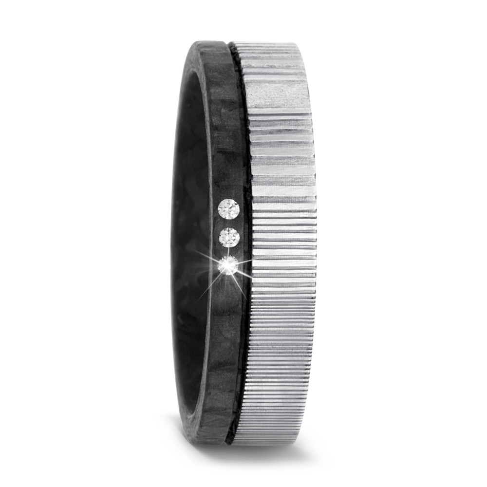 Damaszener Stahl Carbon Ring mit 3 Brillanten