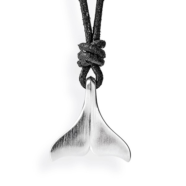 Delfin, großer Delfinflossen Anhänger aus Silber mit Lederband (100 cm)