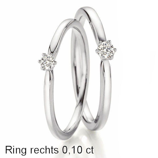 Solitaire Ring aus 585 Weissgold mit einem 0,100 ct w/si Brillant. Aus der Serie "Dieser eine Moment" Fassung: Krappenfassung Ringschiene: Breite: 1,7 mm Stärke 1,5 mm