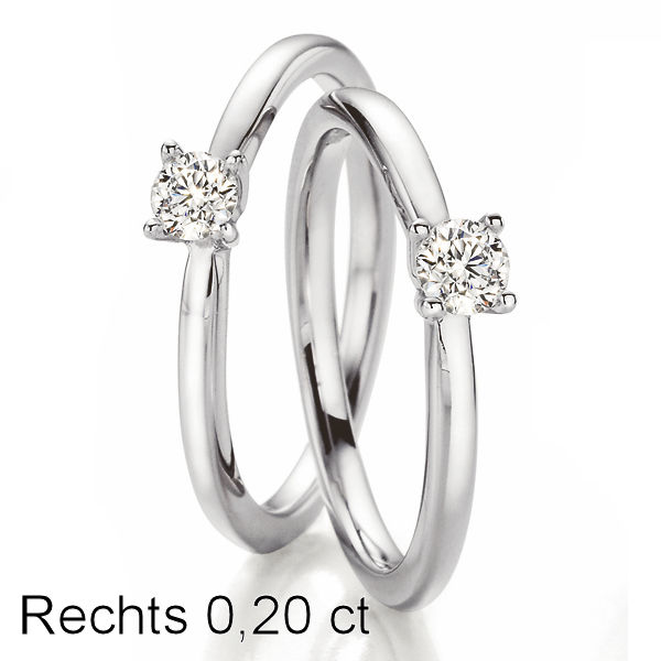 Solitaire Ring aus 585 Weissgold mit einem 0,200 ct w/si Brillant. Aus der Serie "Herz über Kopf" Fassung: Krappenfassung Ringschiene: Breite: 2,1 mm Stärke 1,9 mm
