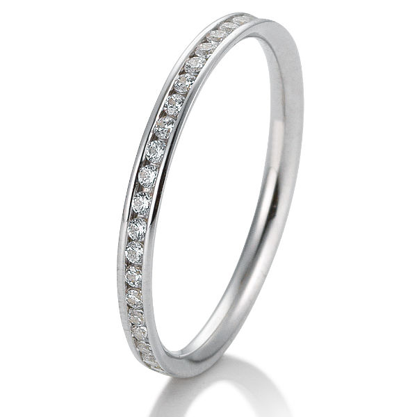 Memoire Vorsteckring aus 585 Weissgold mit 0,26 ct w/si Brillanten in Kanalfassung gefasst. 2 Drittel des Ringes sind aufgefasst. Breite: 2 mm bis 1,3 mm