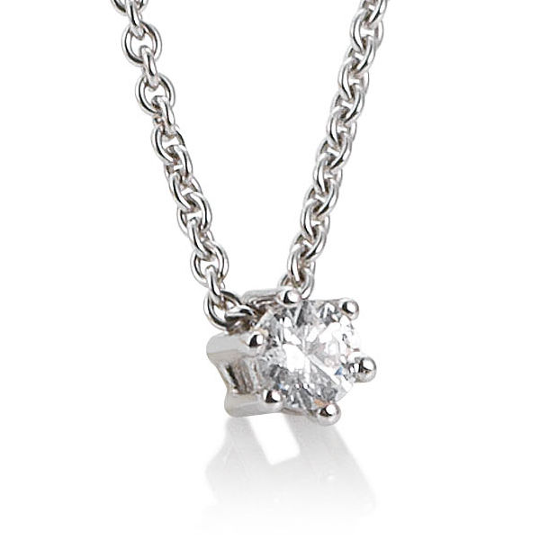 Solitaire Anhänger aus 585 Weissgold mit 0,10 ct W/SI Brillant in einer 6er Krappenfassung. 585 Weissgold Kette 43 - 45 cm Länge