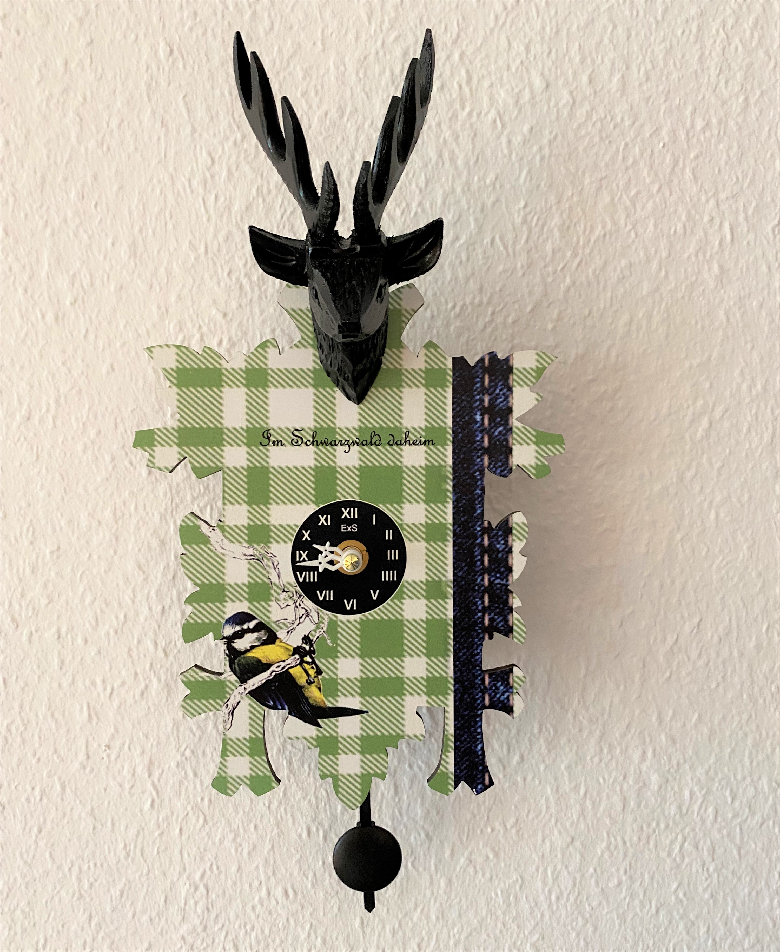Moderne kleine Quarz-Kuckuckuhr Blaumeise
