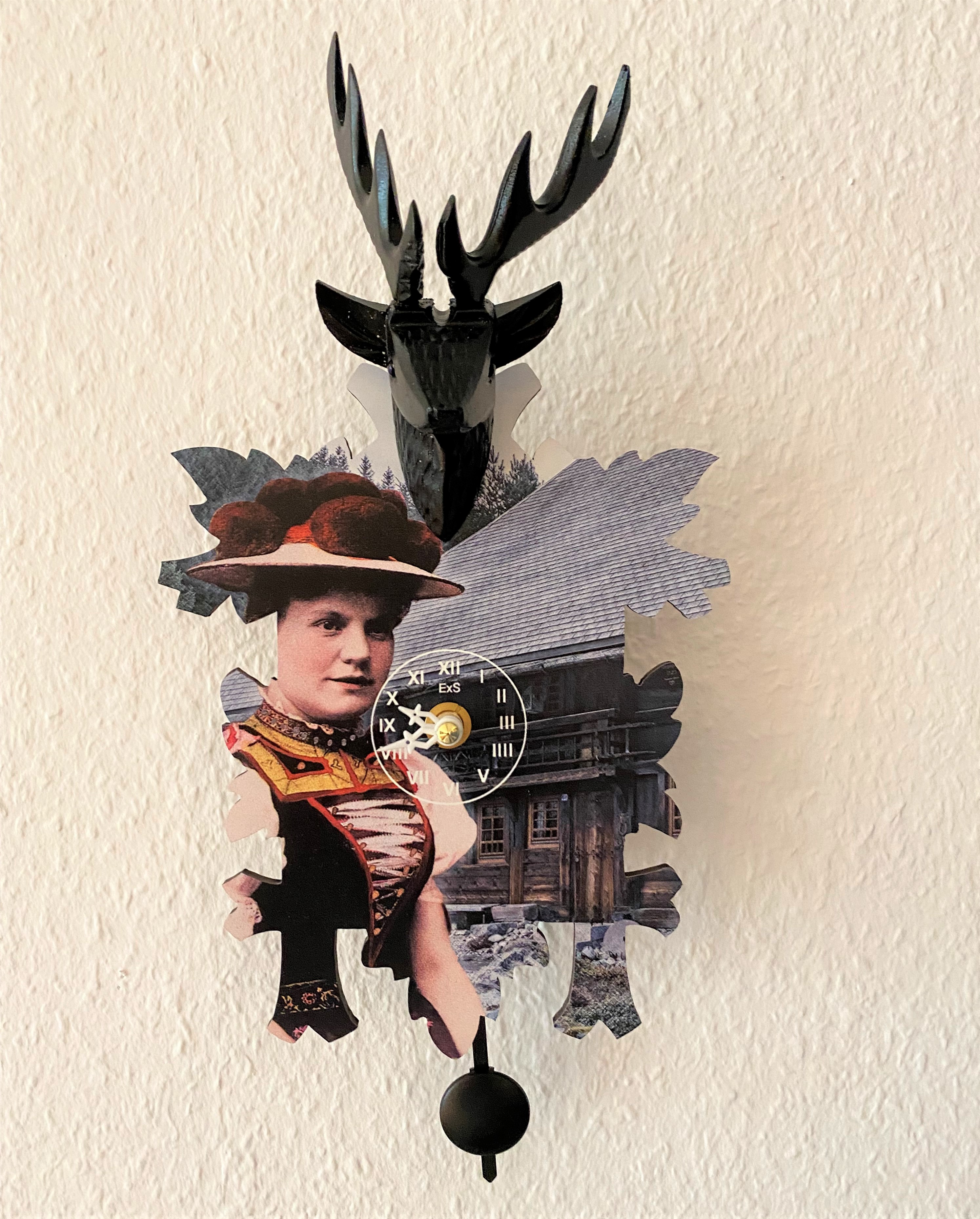 Diese Schwarzwald Wanduhr, ist eine moderne Quarz-Kuckuckuhr und wird im Schwarzwald von dem Traditionsunternehmen Trenkle hergestellt. Das Holzschild wird mit 4-farbigem Digitaldruck bedruckt. Die Uhr spielt im Wechsel 12 verschiedene Melodien oder die Stunden mit einem Kuckuckruf und Wasserplätschern. Die Melodie und der Kuckuck schalten sich bei Dunkelheit ab.