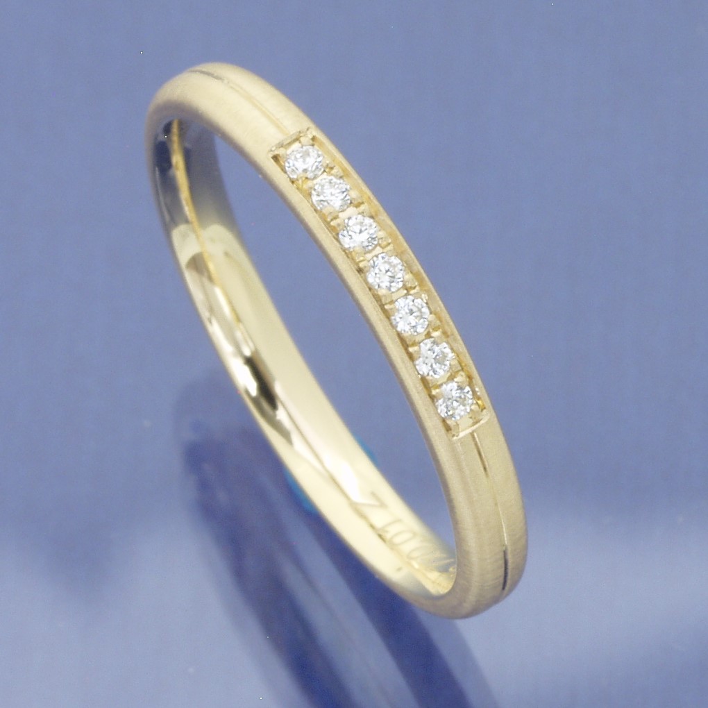 Memoire Ring aus 585 Apricotgold mit 7 Brillanten von zusammen 0,07 ct G/si. Breite: 2,6 mm Stärke: 1,7 mm