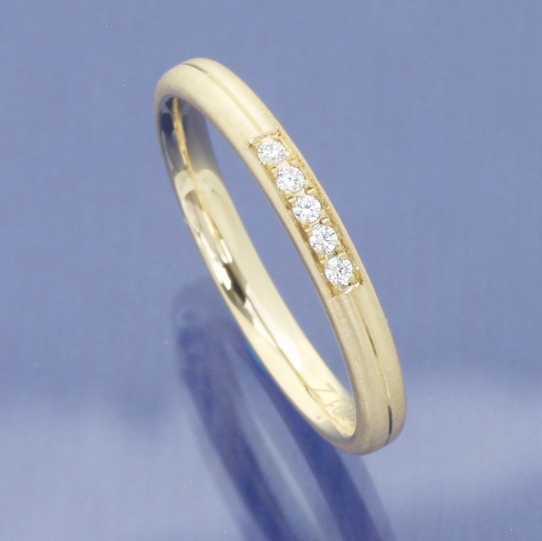 Memoire Ring aus 585 Apricotgold mit 5 Brillanten von zusammen 0,05 ct G/si. Breite: 2,6 mm Stärke: 1,7 mm