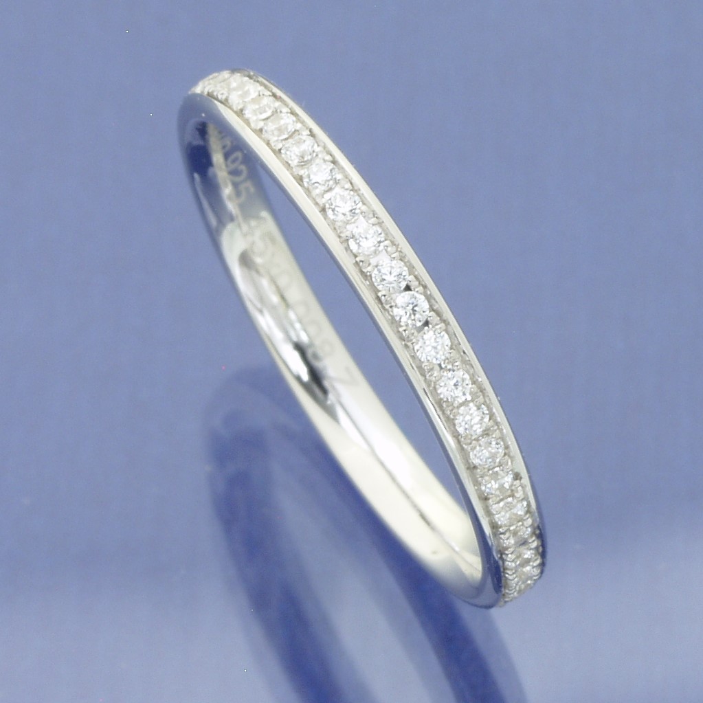Memoire Ring aus 600 Platin mit umlaufend 42 Brillanten von zusammen 0,42 ct G/si. Breite: 2,6 mm Stärke: 1,7 mm