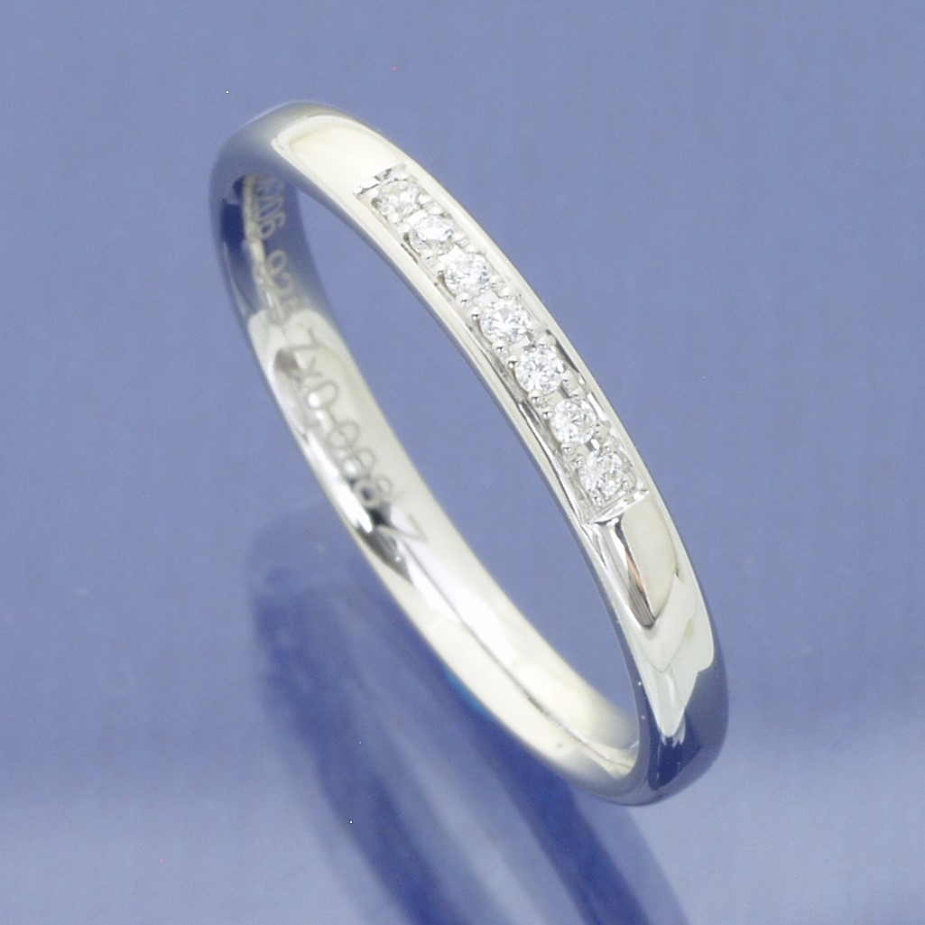 Memoire Ring aus 600 Platin mit 7 Brillanten von zusammen 0,07 ct G/si. Breite: 2,6 mm Stärke: 1,7 mm