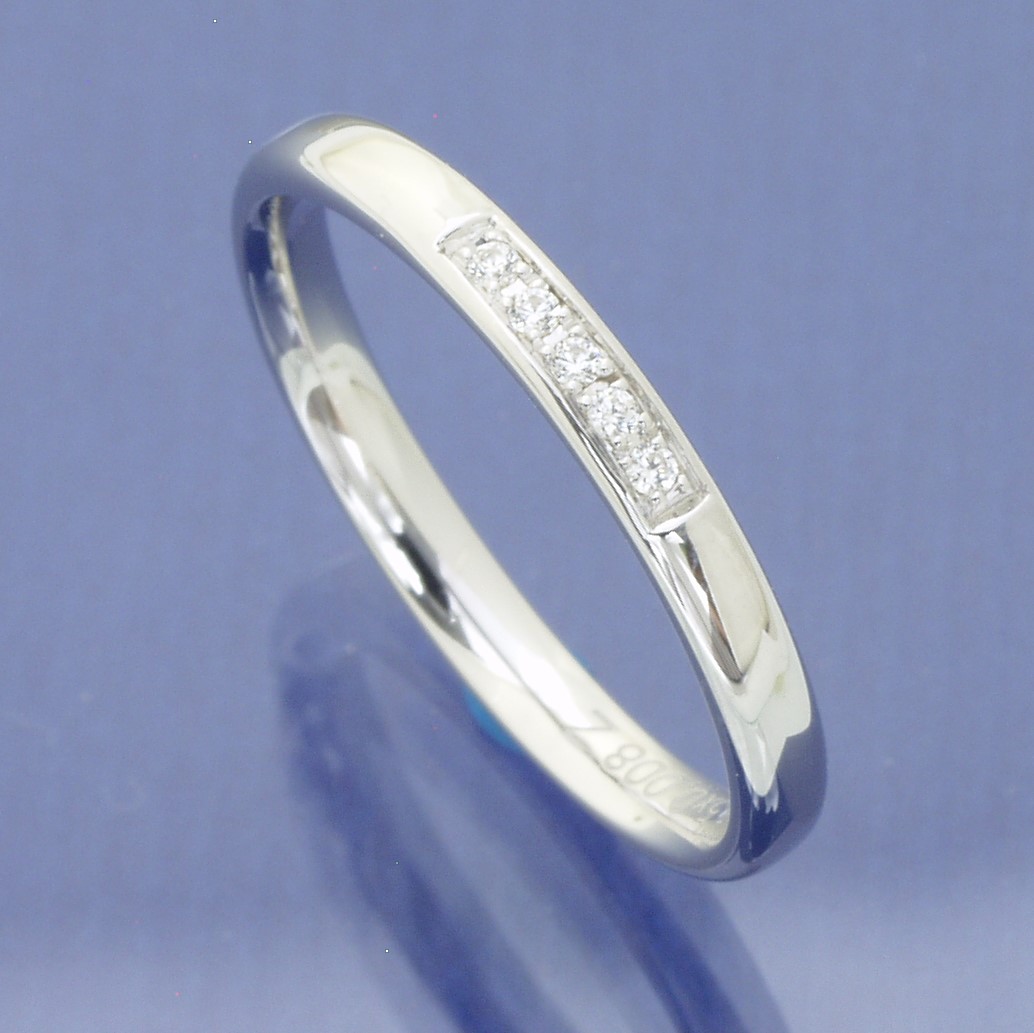 Memoire Ring aus 600 Platin mit 5 Brillanten von zusammen 0,04 ct G/si. Breite: 2,6 mm Stärke: 1,7 mm