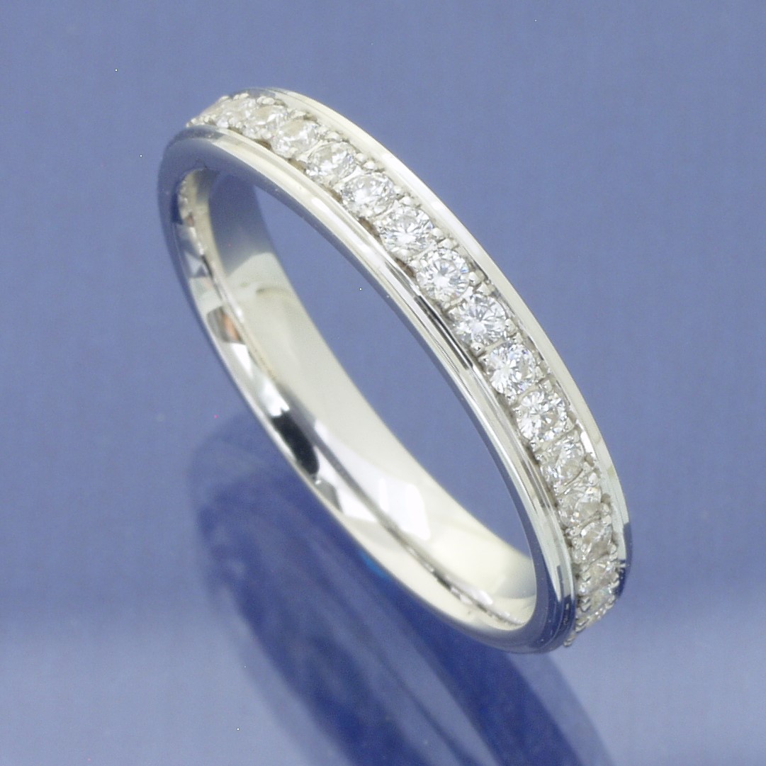 Memoire Ring aus 600 Platin mit umlaufend Brillanten von zusammen 0,70 ct G/si. Breite: 3,6 mm Stärke: 1,9 mm