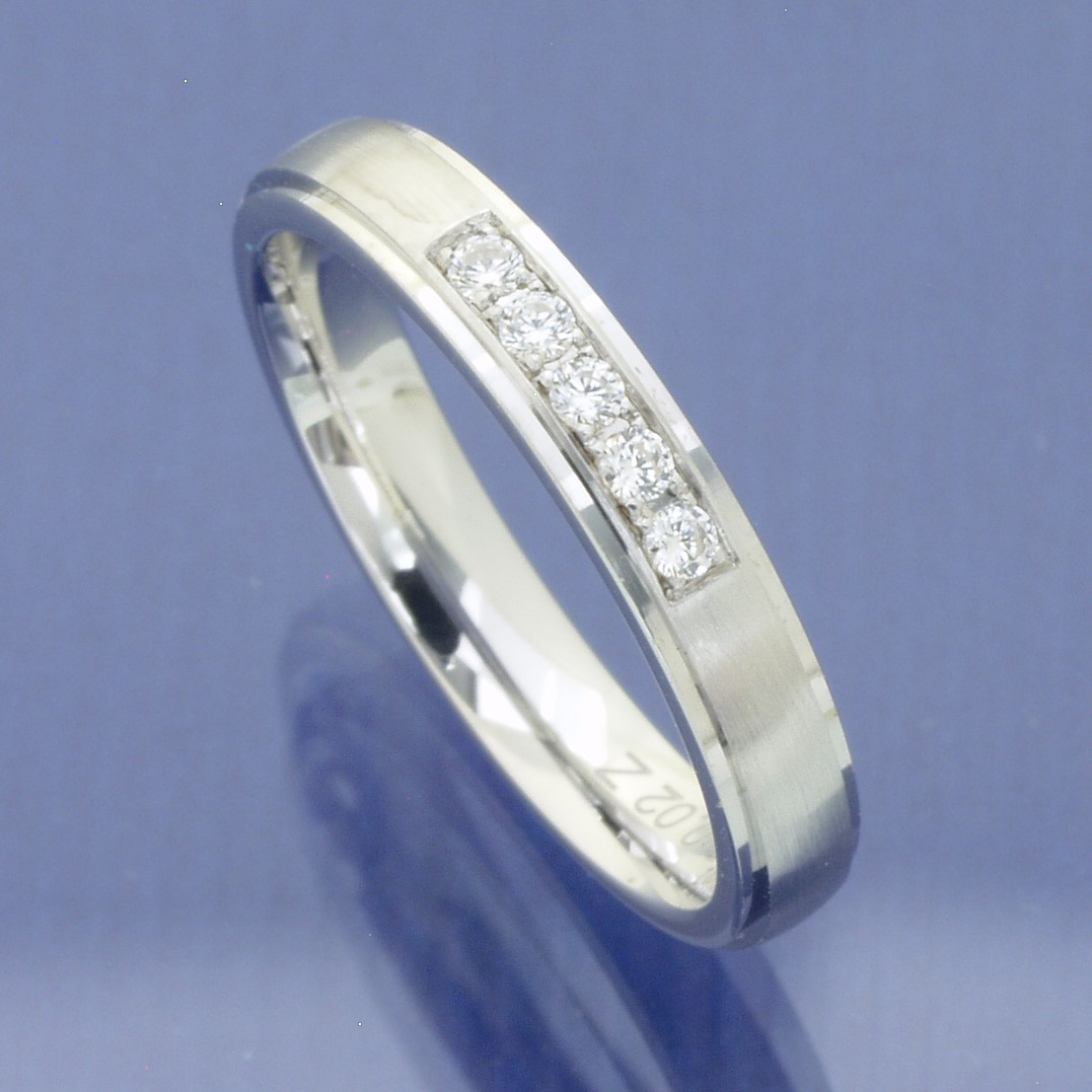 Memoire Ring aus 600 Platin mit 5 Brillanten von zusammen 0,10 ct G/si. Breite: 3,6 mm Stärke: 2 mm