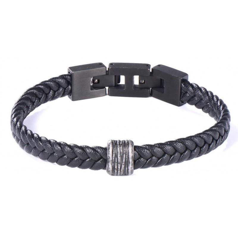 Herren Armband-Edelstahl Leder schwarz