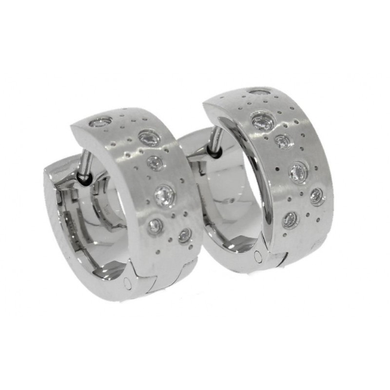 Creolen aus Edelstahl mit Zirkonia gefasst.