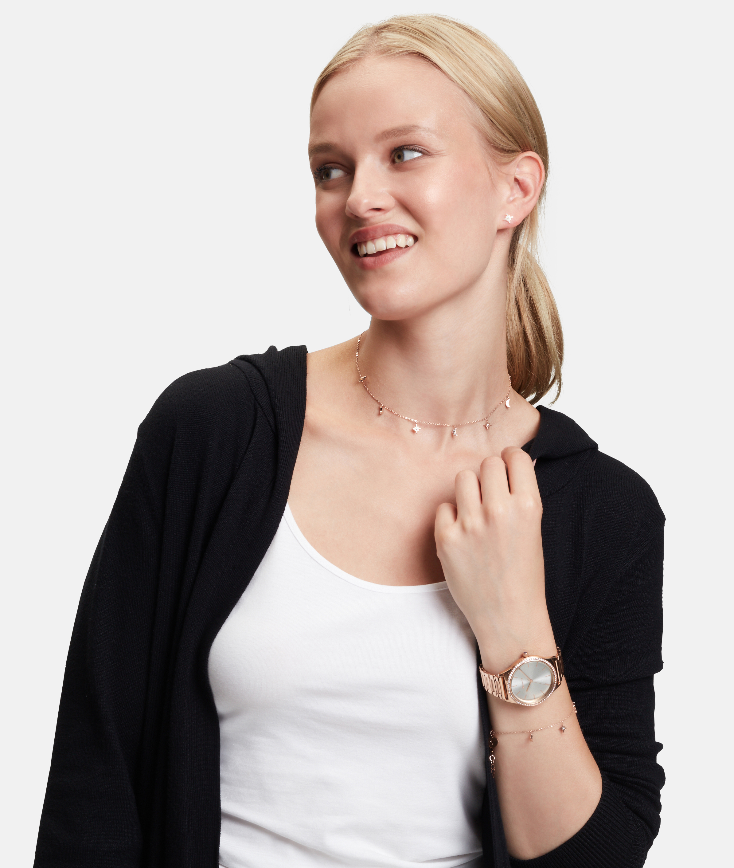 - Band: Edelstahlarmband IP Roségold mit Faltschließe und Wechselstegen