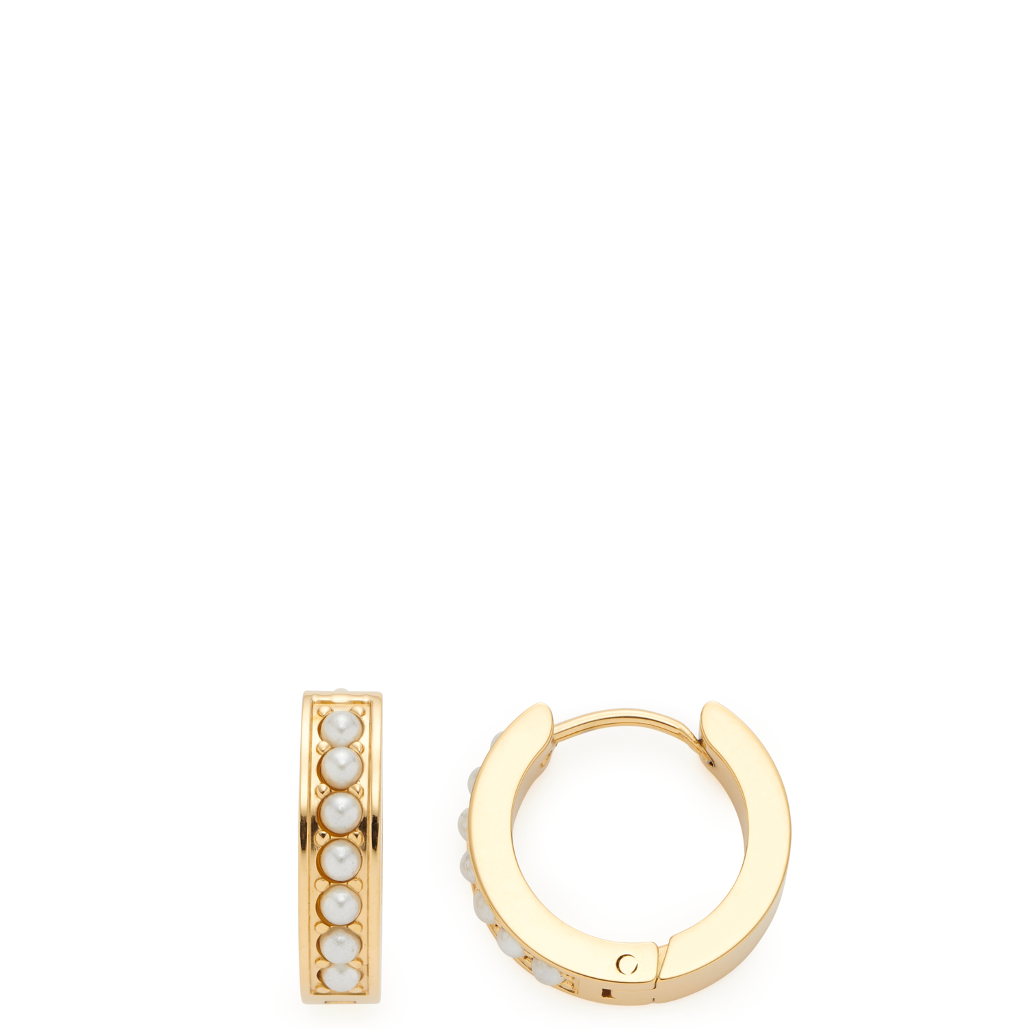 Diese Klappkreolen sind mit ihren winzigen, rundum in die Vorderseite eingearbeiteten Imitationsperlen perfekt auf das verträumte Design der dazugehörigen Halskette und des passenden Armbands abgestimmt. Gemeinsam verschmelzen sie zu einer märchenhaft schönen Einheit.