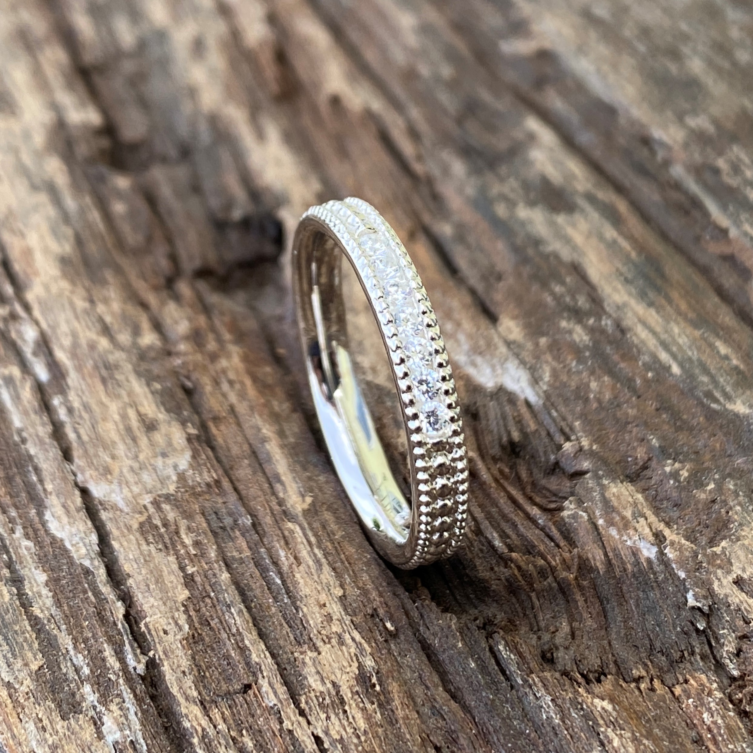 Ring aus 585 Weissgold mit 0,140 ct. Brillanten. Jedes Leben wird durch viele individuelle Ereignisse und magischen Momenten geprägt. Die traumhaft funkelnden Brillanten in Verbindung mit der mittig angeordneten Millgriffverzierung, symbolisieren die Erfüllung der persönlichen Wünsche und Vorstellungen.