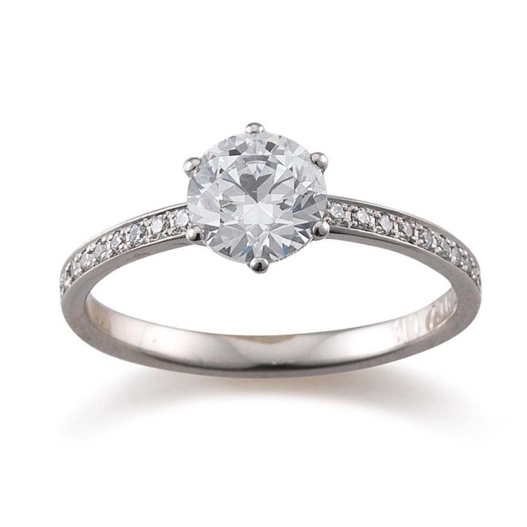 Gerstner Antragsring, Verlobungsring, Solitaire Ring aus 585 Weikssgold mit einem 110 ct TW-vsi Brillanten. Fassung: Krappenfassung Ringschiene: Breite: 2,1 mm Stärke: 1,4 mm bis 4,8 mm Durchmesser Fassung: 7,6 mm Lieferung im Gerstner Etui