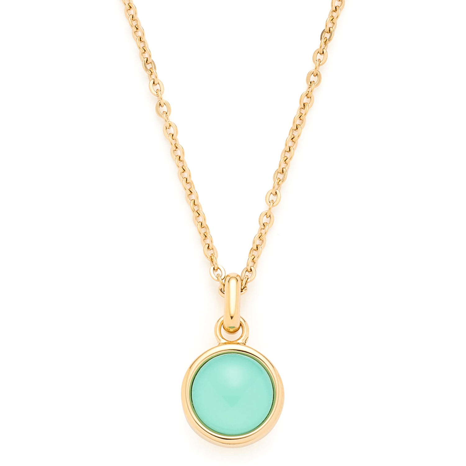 Diese kurze Halskette ist ein wahrhaftiger Hingucker. Der opake Glascabochon in einem faszinierenden Lagunenblau wird von einem weich geformten, runden Anhänger gehalten und ist das Highlight des Schmuckstücks. Die feine Spiegel-Ankerkette schimmert dezent und gibt der Kette eine elegante Note. Ein Karabinerverschluss sorgt für ein leichtes An- und Ausziehen und das Verlängerungskettchen ermöglicht es, die Länge der Kette individuell anzupassen. Ein absolutes Must-have für alle Schmuckliebhaberinnen.