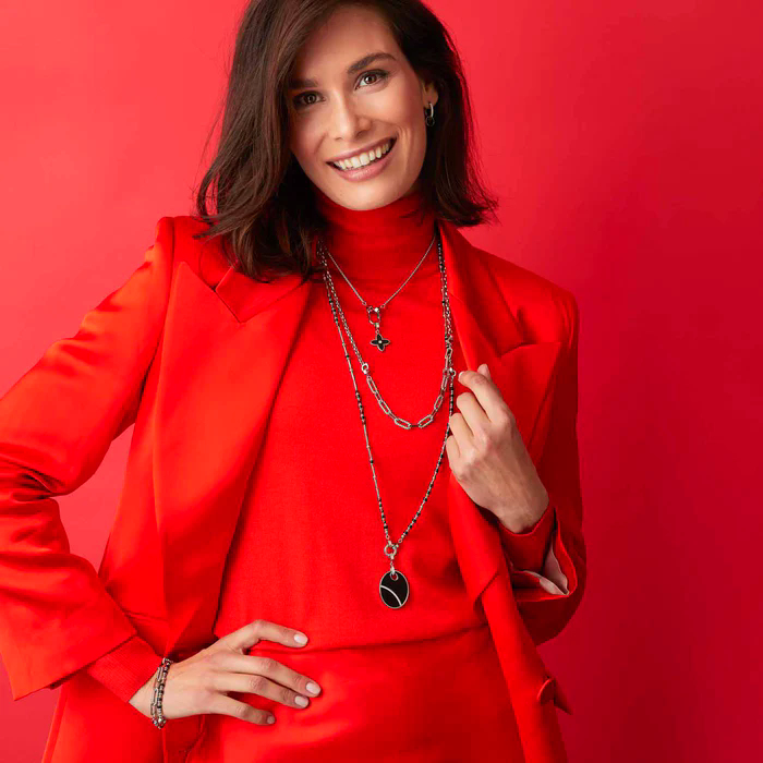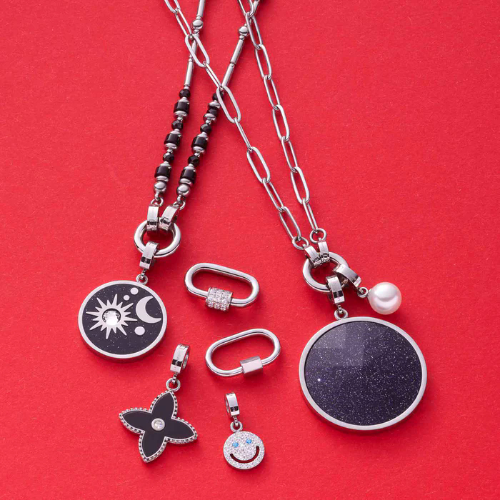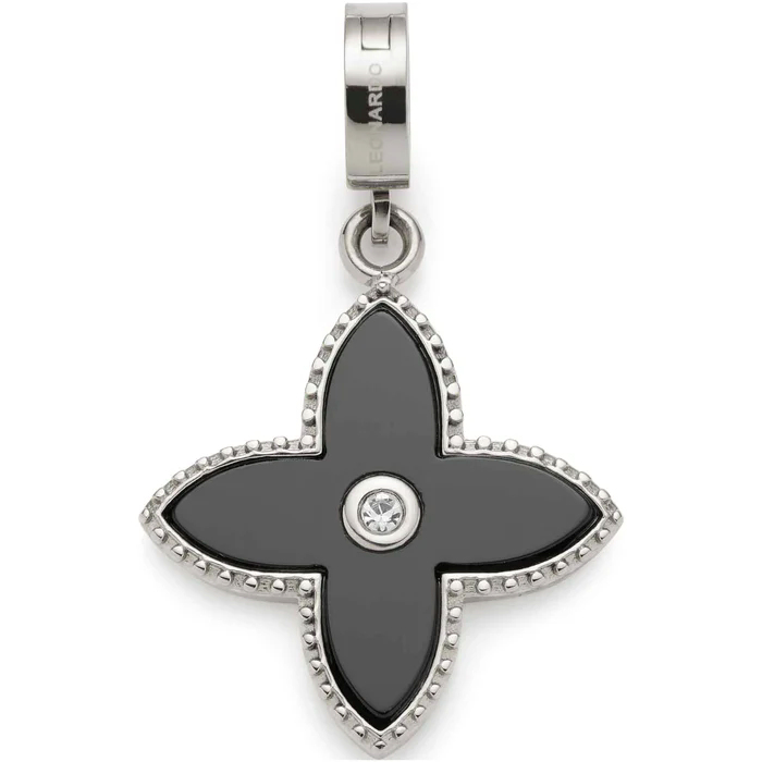 Ein schwarzer Onyx bildet den Fond dieses bezaubernden Anhängers und verleiht ihm eine raffinierte Note. Die feine Ziselierung der Edelstahl-Fassung unterstreicht die hochwertige Handwerkskunst, die in diesem Schmuckstück steckt. Die Kombination aus Onyx und Glaskristall sorgt für einen atemberaubenden Kontrast, der den Anhänger zu einem wahren Kunstwerk macht.