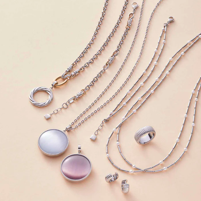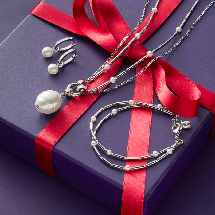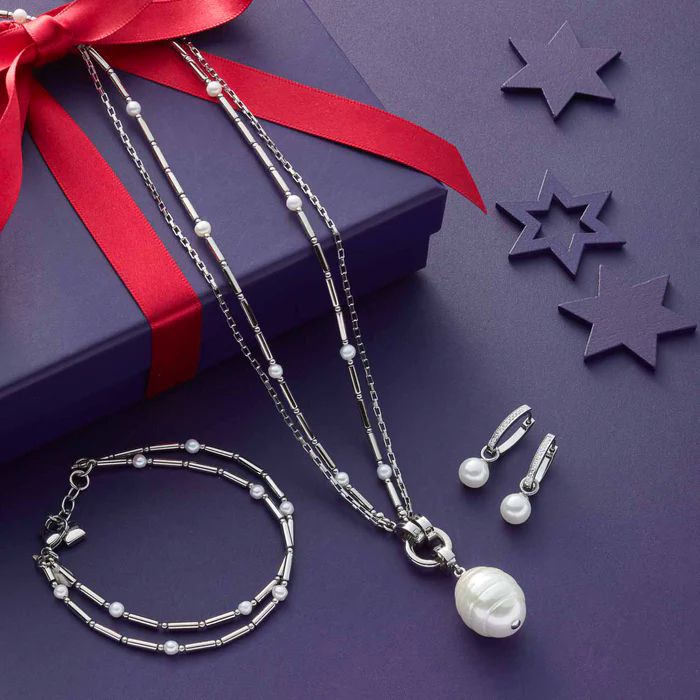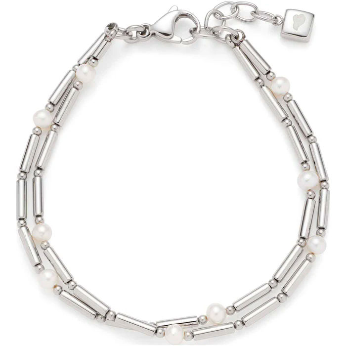 Erleben Sie die faszinierende Symbiose aus Linien und Kurven mit dem Armband Mirella, das perfekt zur passenden Halskette ergänzt. Die kunstvolle grafische Mixtur aus aneinandergereihten Edelstahl-Stäbchen, winzigen Süßwasser-Zuchtperlen und Mini-Edelstahl-Kügelchen formt ein außergewöhnliches Schmuckstück, das Ihre Blicke auf sich ziehen wird.