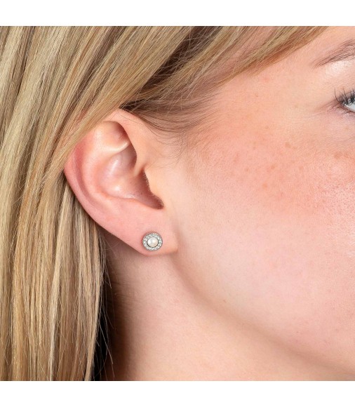 Tauche ein in die bezaubernde Welt der Ohrstecker Isa, die das Schmuck-Set der gleichnamigen Serie vollendet. Inspiriert vom Mini-Charm des zarten Colliers, sind auch die kleinen Ohrstecker mit einem weißen Imitationsperlen-Cabochon gestaltet und von winzigen, gefassten Zirkonia-Steinchen mit funkelndem Facettenschliff umrandet.