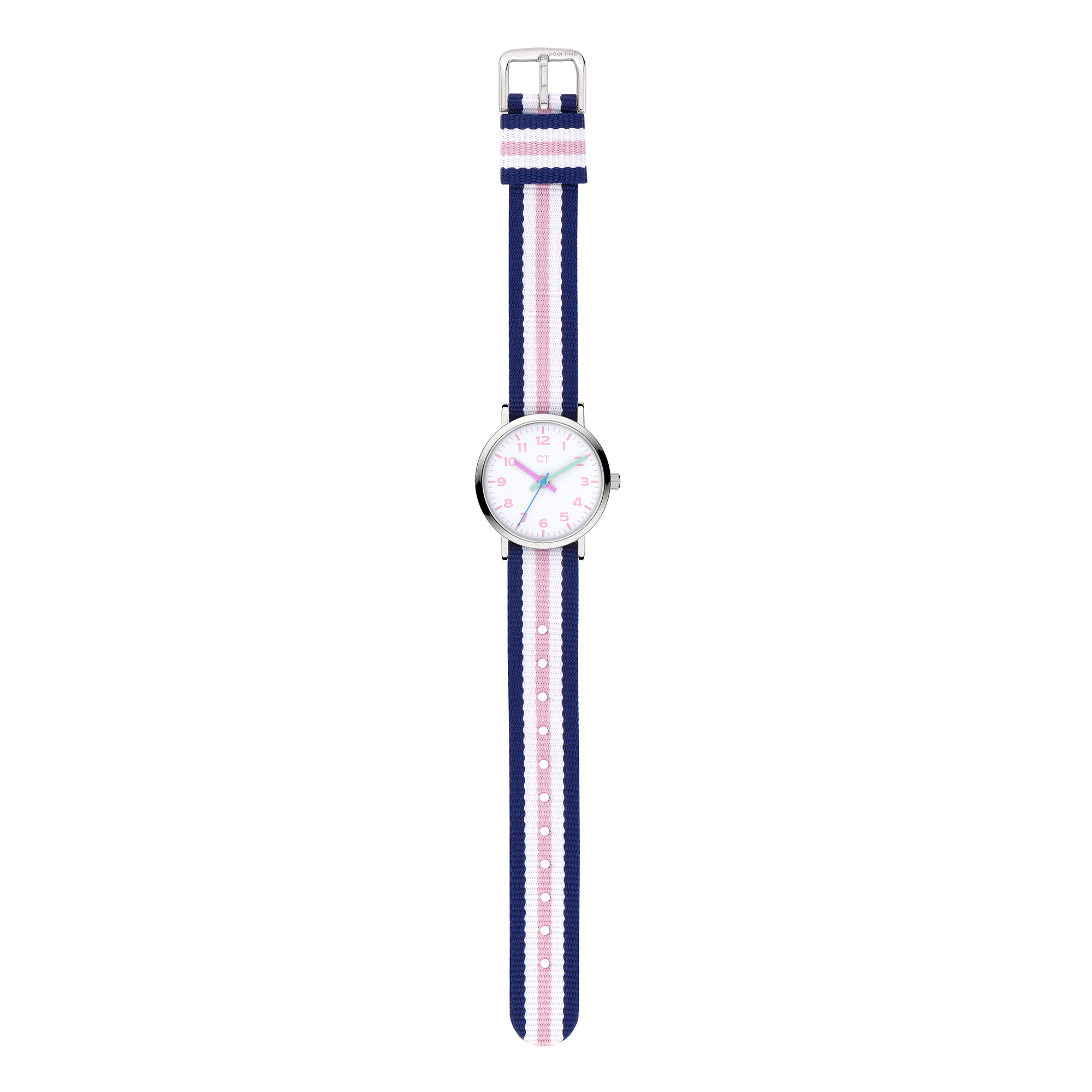 Diese schöne Kinderuhr der Marke Cool Time lässt Kinder-Herzen höher schlagen. Neben dem mit viel Liebe zum Detail entworfenen Design wurde bei der Entwicklung auch auf die Qualität besonders viel Wert gelegt. So ist die Kinderuhr mit Textilband schadstoffgeprüft, widerstandsfähig und sehr komfortabel zu tragen. Dank klarer Zahlen und präzisen Minuteneinteilungen wird das Erlernen der Uhrzeit zum Kinderspiel. Ein zuverlässiges Quarzwerk und kratzunempfindliches Mineralglas runden die Kinderuhr optimal ab. Verpackt im coolen Mäppchen mit Eulen-Motiv ist die Uhr ein ideales Geschenk und sorgt auch in der Schule für "Cool Time".