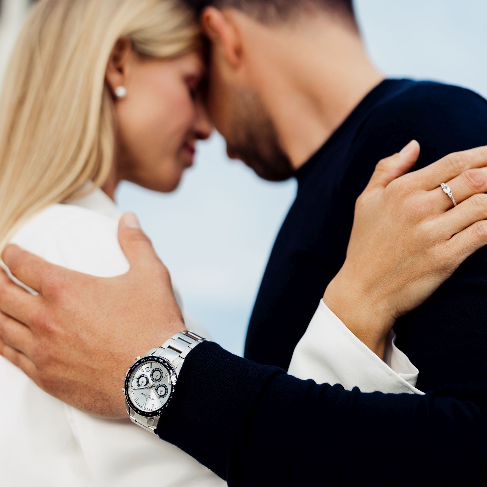 Präzision und besondere Funktionalitäten, wie Stoppfunktion, Datums- und 24h Anzeige sind durch den Chronographen praktische Features, die Ihren sportlichen Typ perfekt ergänzen.