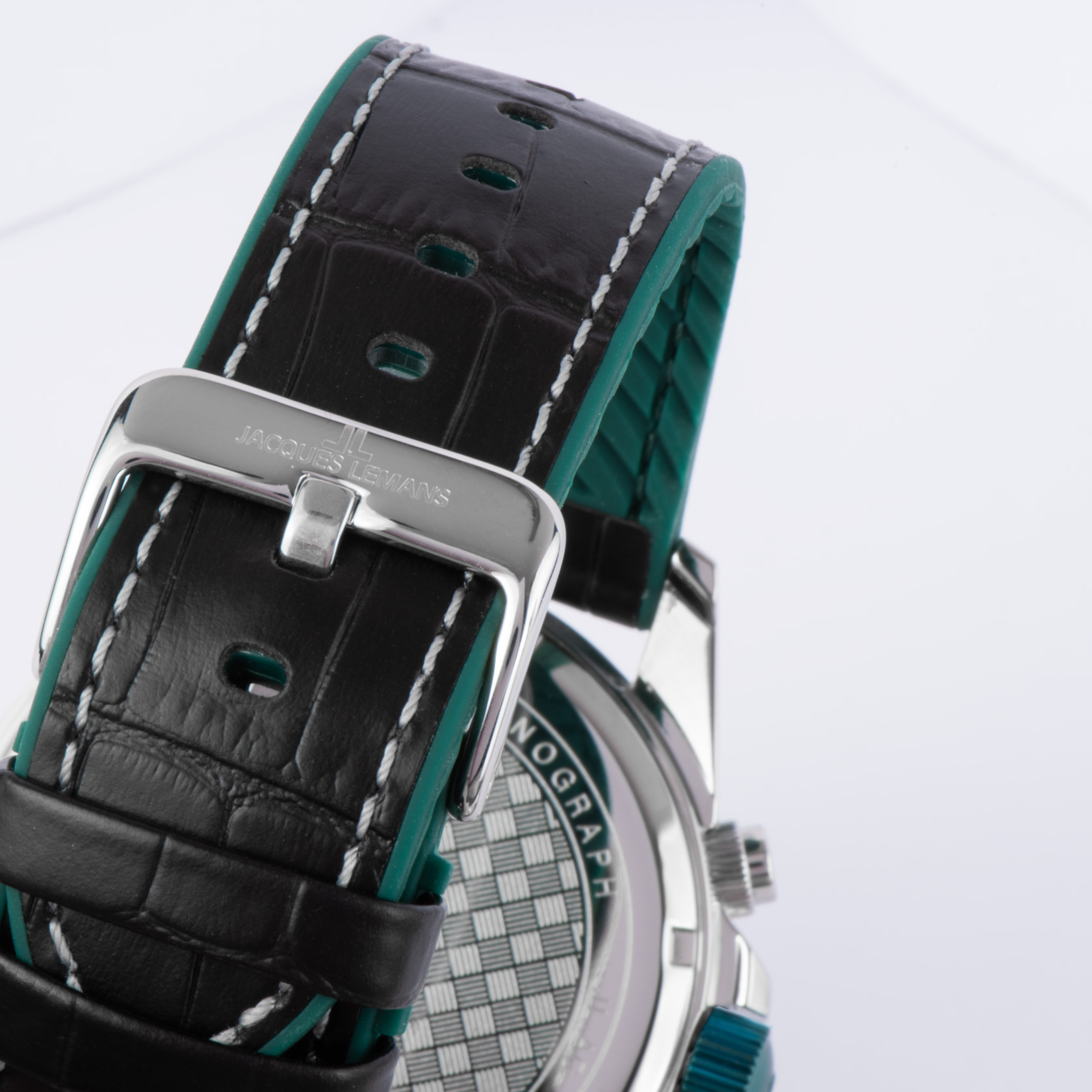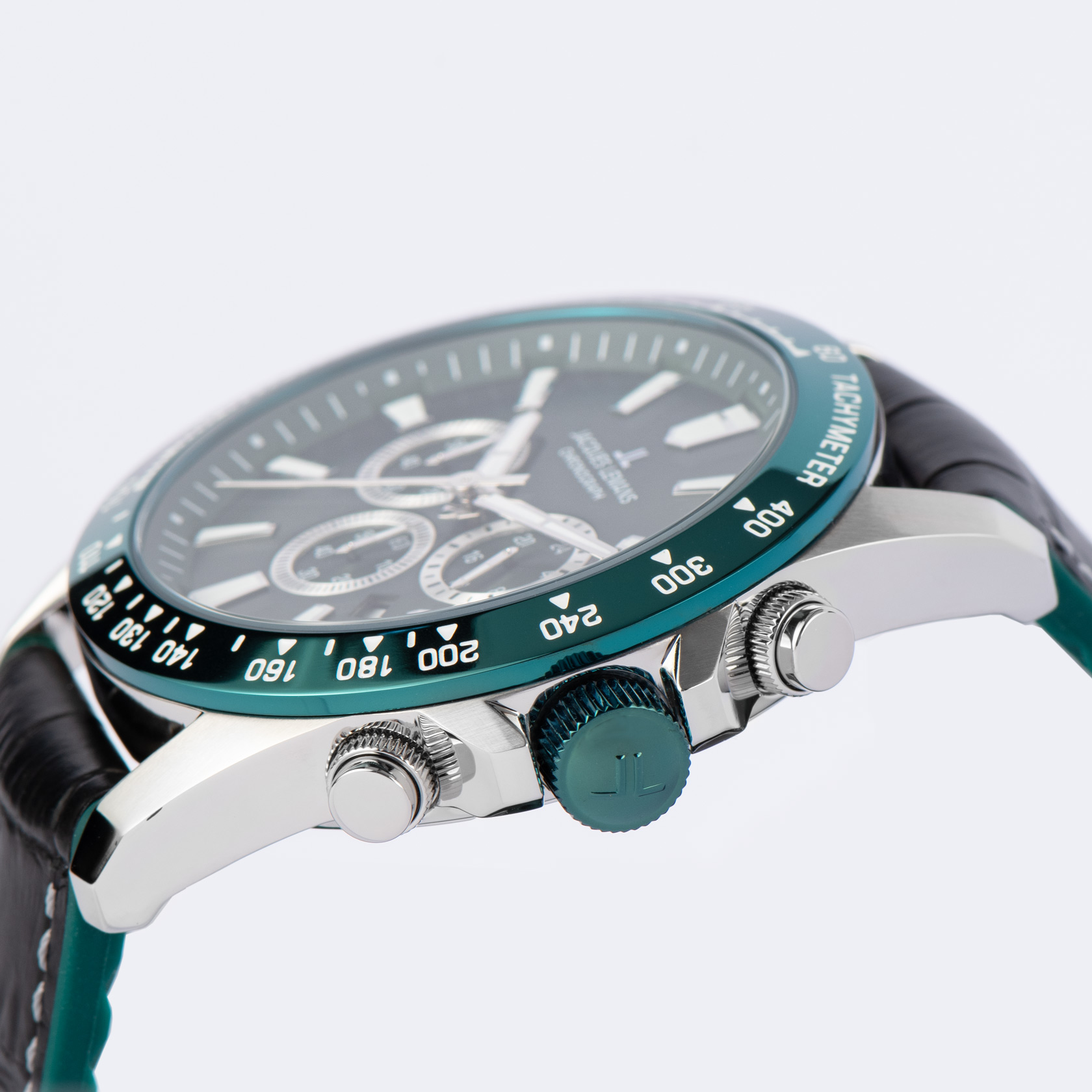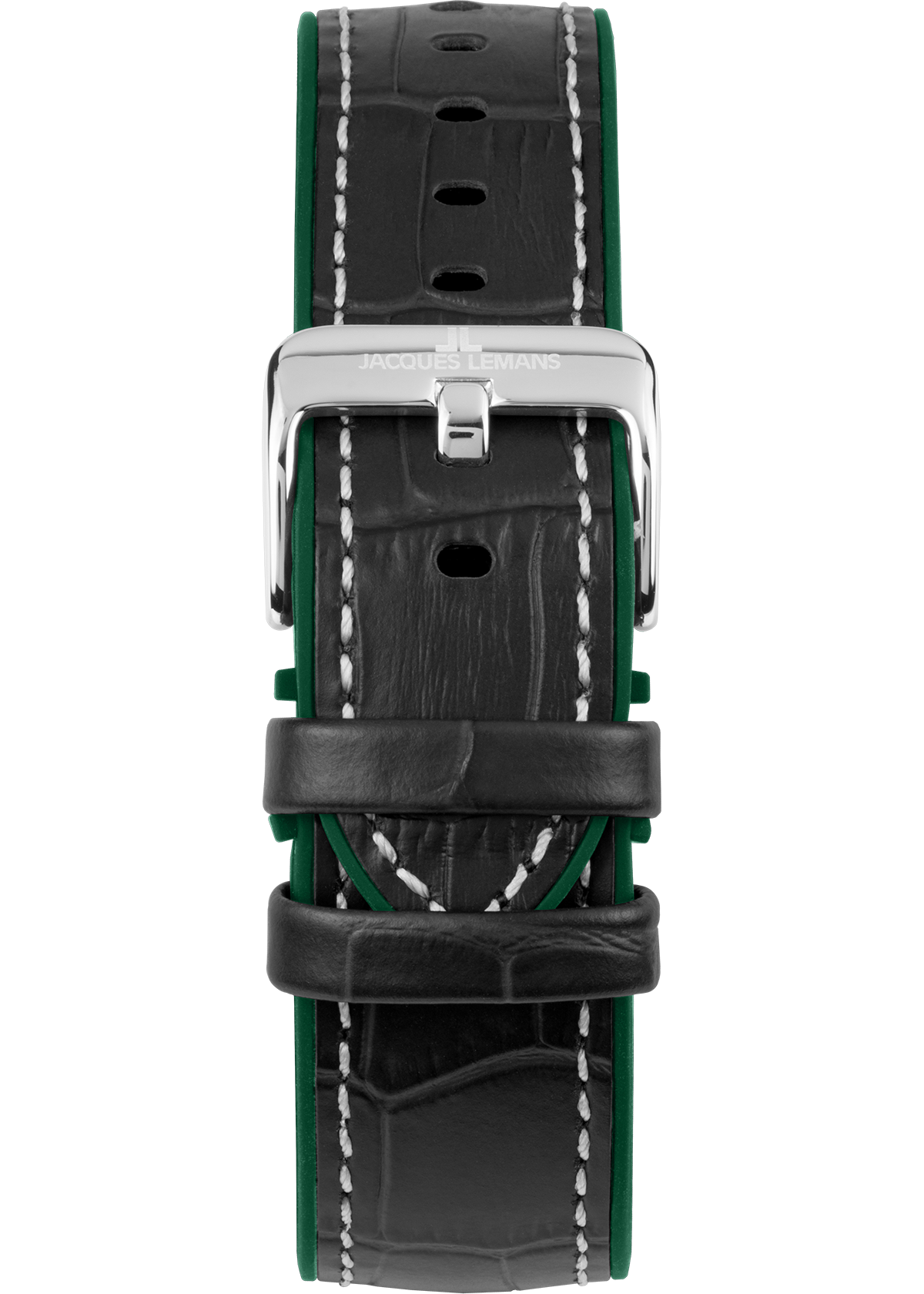 Diese elegante Jacques Lemans Herrenuhr verbindet Funktionalität mit Stil. Mit einem robusten Gehäuse und einem auffälligen grünen Zifferblatt, das mit einer Tachymeterskala versehen ist, ist sie der perfekte Begleiter für den modernen Mann. Die Uhr verfügt über praktische Chronographenfunktionen, untergebracht in drei kleineren Zifferblättern, die eine präzise Zeitmessung ermöglichen. Leuchtende Zeiger und Stundenmarkierungen sorgen für optimale Ablesbarkeit zu jeder Tageszeit. Abgerundet wird das Design durch ein klassisches schwarzes Lederarmband, das einen Hauch von Eleganz hinzufügt und den Tragekomfort erhöht. Diese Uhr ist nicht nur ein Zeitmesser, sondern auch ein Statement am Handgelenk.