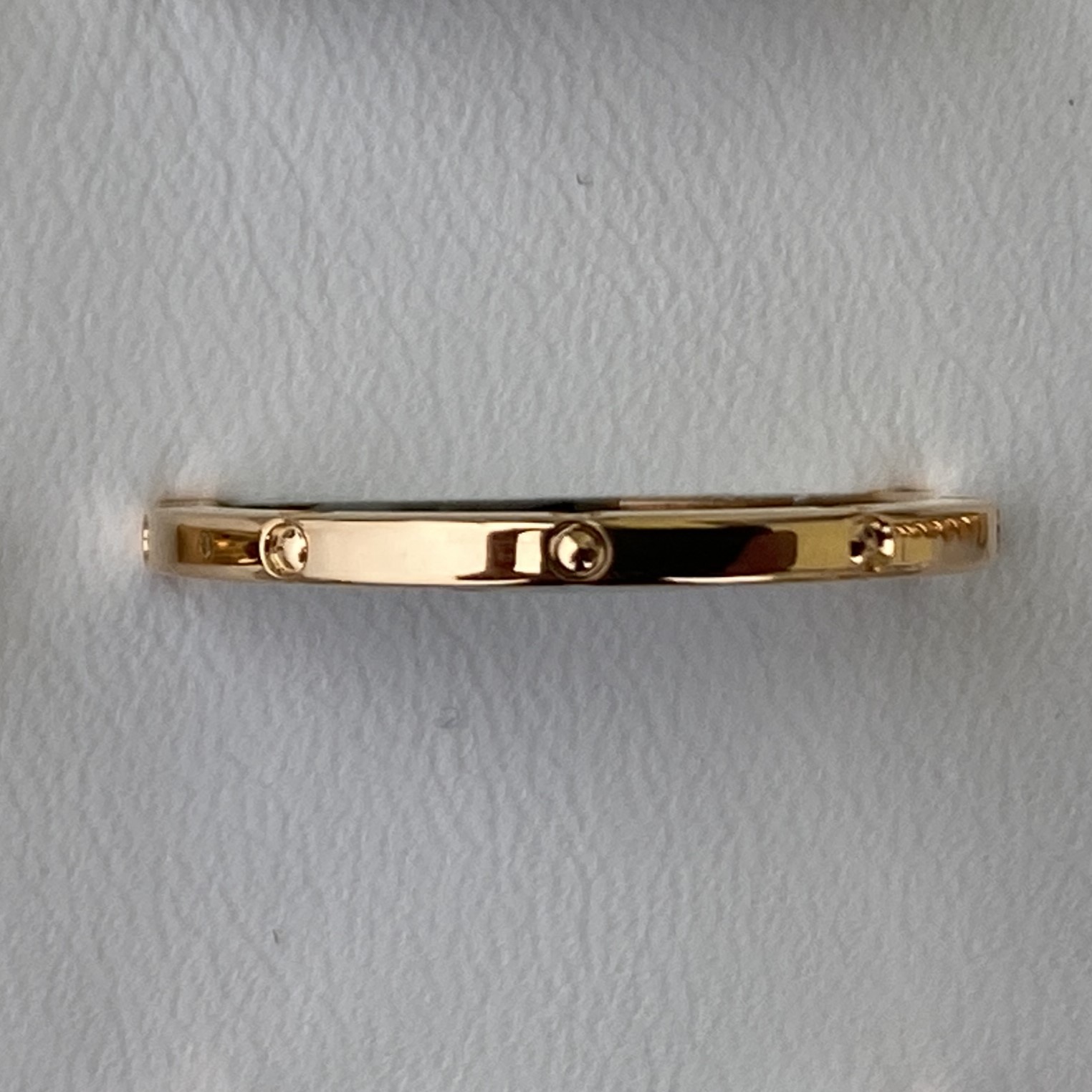 Entdecken Sie die raffinierte Eleganz und Kunstfertigkeit unseres Sammelrings aus 585 Mittelgold, dessen Design durch sorgfältig angedeutete Steine auf der Oberfläche und an der Seite besticht. Dieses innovative Detail kreiert eine Illusion von edlem Steinbesatz, ohne tatsächlich echte Steine einzusetzen. Die kunstvollen Vertiefungen und Erhebungen, die Steine nachahmen, spielen geschickt mit Licht und Schatten, um einen faszinierenden visuellen Effekt zu erzeugen. Das warme Mittelgold bildet dabei einen harmonischen Hintergrund für dieses außergewöhnliche Design. Dieser Sammelring zelebriert kreative Schmuckgestaltung und bietet sich perfekt als stilvolles Statement-Stück oder als Teil einer individuellen Ringkombination an. Er ist ideal für diejenigen, die nach etwas Einzigartigem suchen und großen Wert auf persönliche Ausdruckskraft und stilvolle Eleganz legen.