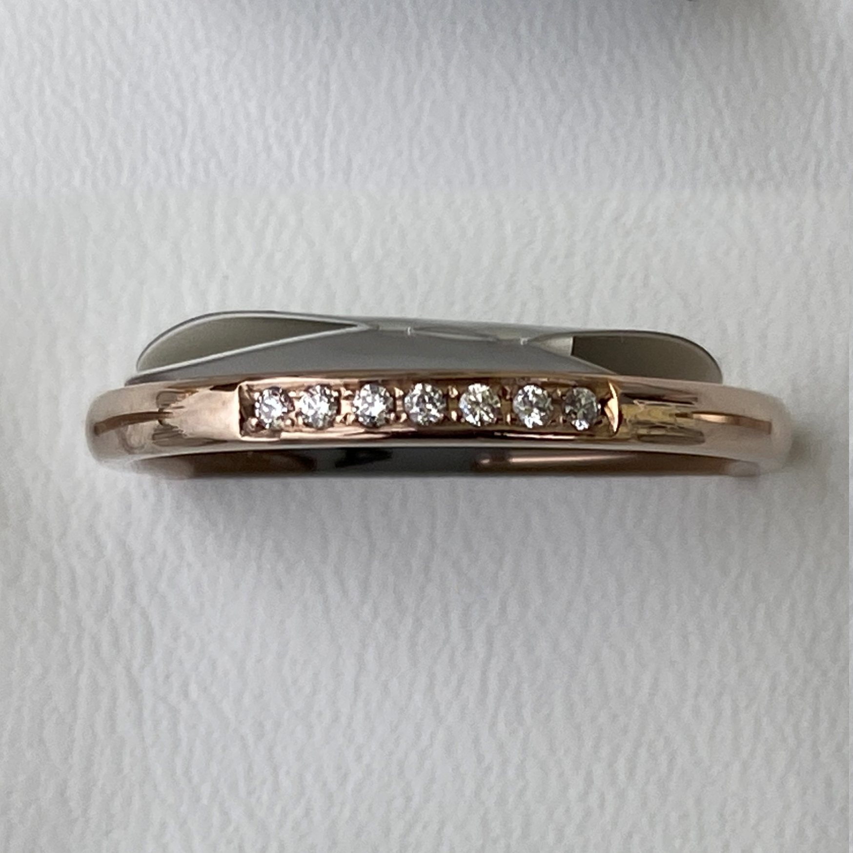 Erleben Sie die strahlende Handwerkskunst unseres Sammelrings aus 585 Haselnussgold, der mit sieben funkelnden Brillanten besetzt ist, die zusammen 0,035 Karat wiegen. Dieses Juwel der Schmuckkunst beeindruckt mit einer hochglanzpolierten Oberfläche, die das Licht spektakulär einfängt und widerspiegelt.