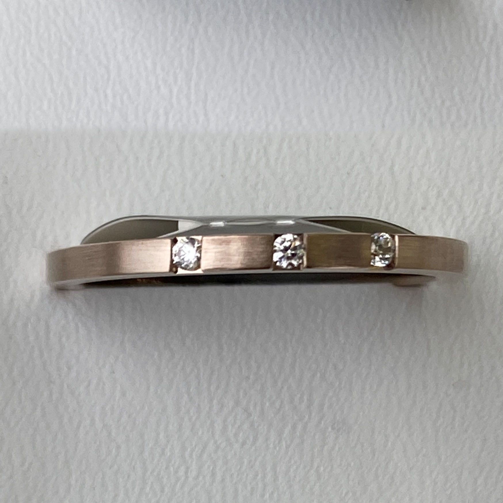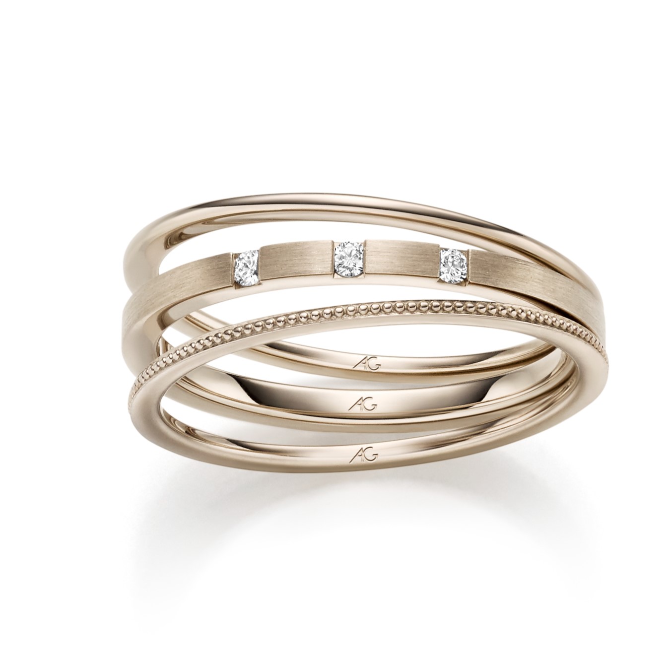 Dieser Ring ist sowohl für den täglichen Gebrauch als auch für besondere Anlässe geeignet, indem er subtilen Luxus mit raffinierter Schönheit kombiniert. Ein unvergessliches Element in jeder Schmuckkollektion, das sowohl für seine hohe Qualität als auch für sein einzigartiges Design geschätzt wird. Der Sammelring aus 585 Haselnussgold mit drei Brillanten repräsentiert eine perfekte Symbiose aus Handwerkskunst und eleganter Ästhetik.
