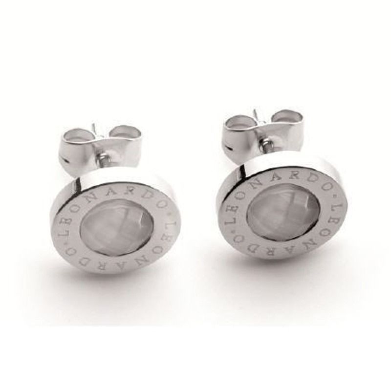 Ein facettierter Glasstein wird von einem gravierten Edelstahlring gehalten. Der schlichte Ohrstecker funktioniert für Business Outfits und für Casuals.
