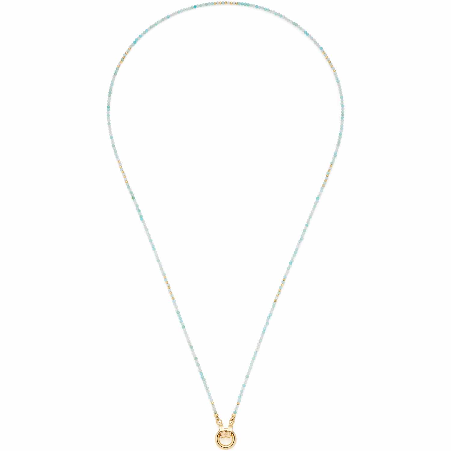 Genießen Sie den Sommer das ganze Jahr über mit unserer Halskette, die mit ihrer sommerlichen Farbgebung ein wahres Highlight ist. Die natürlichen Amazonit-Perlen erinnern mit ihren Farben von Weiß über helles Mint bis hin zu Türkis an die Schönheit des Meeres. In Kombination mit der goldenen Ionenplattierung der zwischengesetzten Mini-Edelstahl-Kügelchen strahlen sie besonders intensiv.