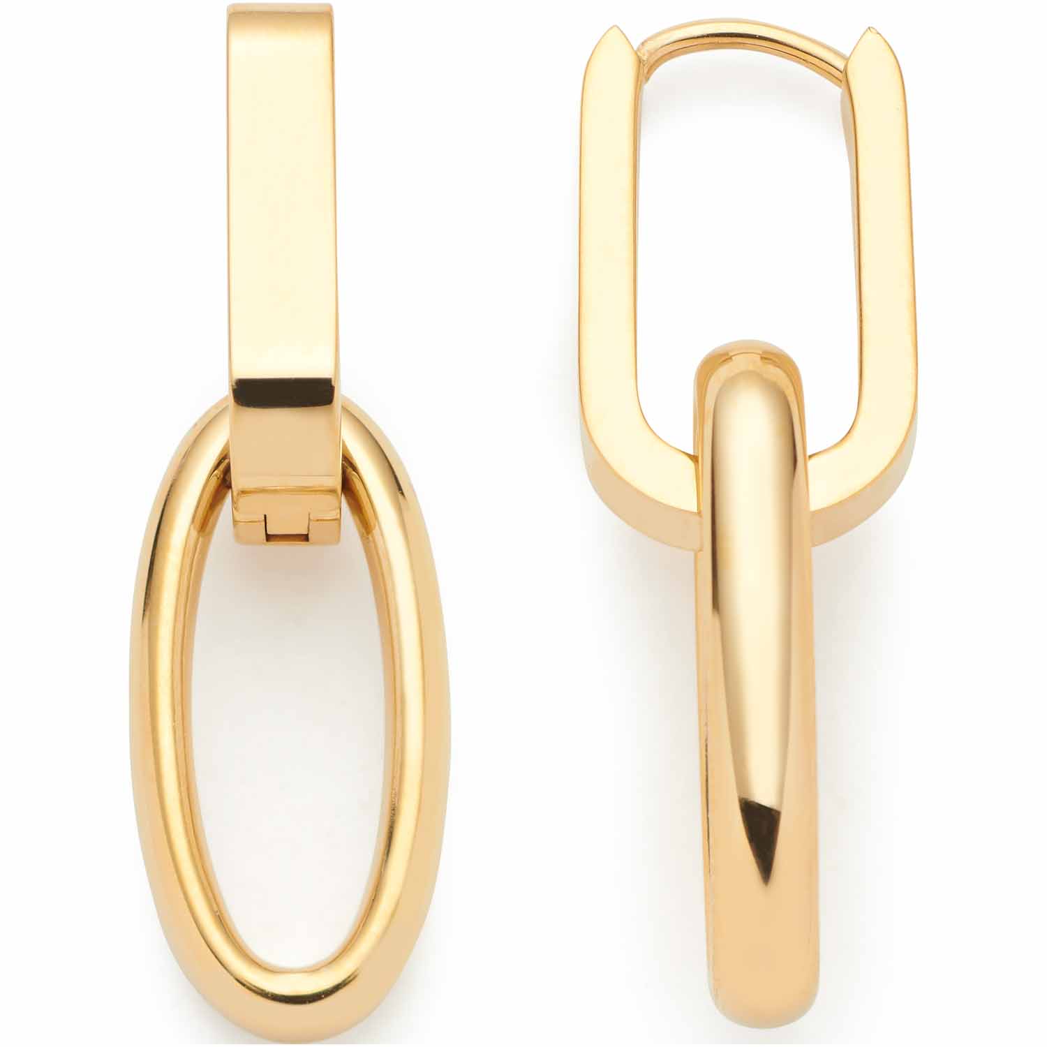 Die besondere Note dieser Creolen liegt in den ovalen Kettenglied-Anhängern, die locker an den Creolen befestigt sind. Diese Anhänger greifen das Design der passenden Halskette und des Armbandes aus derselben Kollektion auf, was für ein harmonisches und durchdachtes Gesamtbild sorgt.