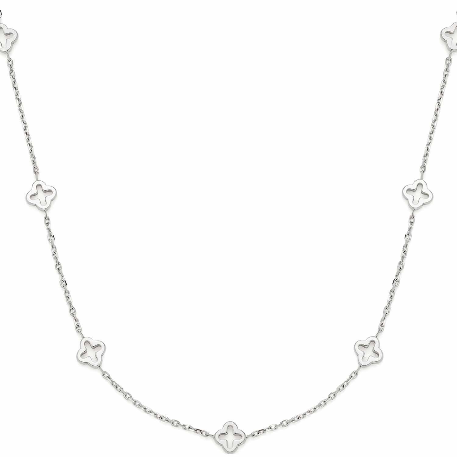 Die zarte Spiegel-Ankerkette ist mit kleinen Kleeblatt-Ornamenten verziert, die einen verspielten Touch verleihen und dem Schmuckstück eine besondere Note verleihen.