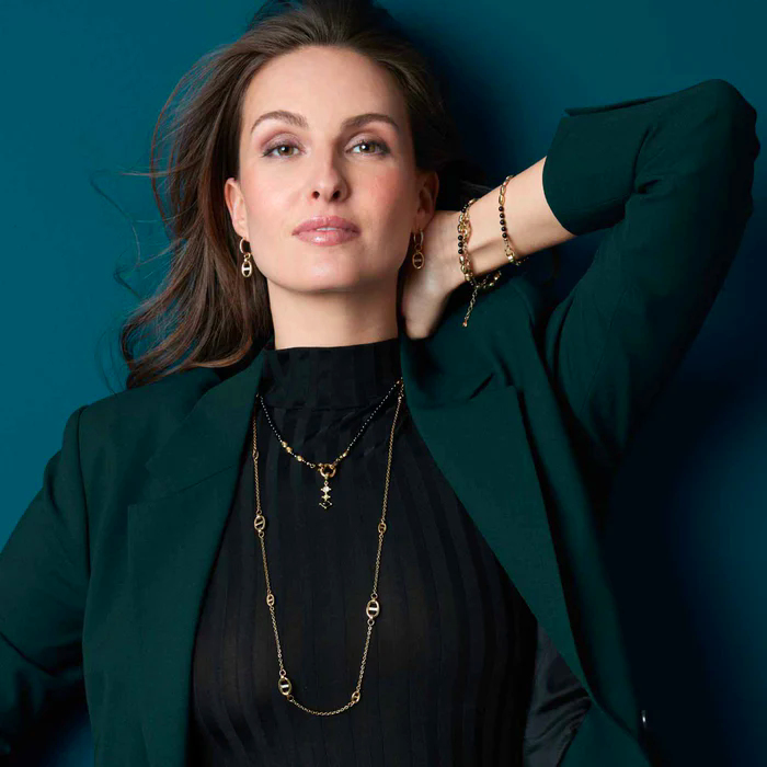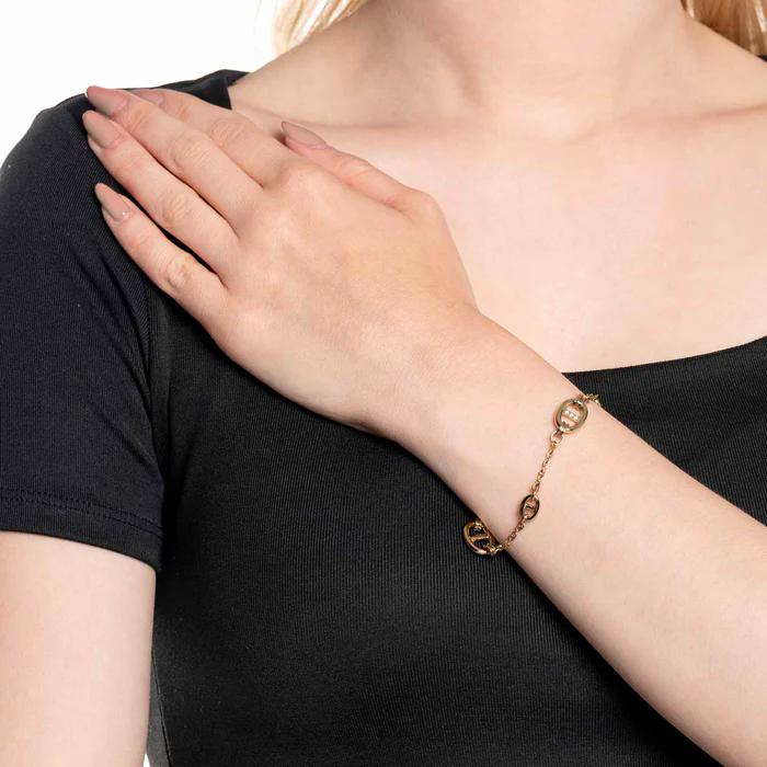 Das Armband HERMA Gold vereint auf harmonische Weise moderne und klassische Designelemente. In regelmäßigen Abständen sind große und kleine Glieder in der Form einer Schiffsankerkette eingearbeitet, die dem Armband seinen charakteristischen Look verleihen. Die Zirkonia-Steine auf den Stegen der größeren Glieder setzen funkelnde Akzente und veredeln das Schmuckstück auf dezente Weise.