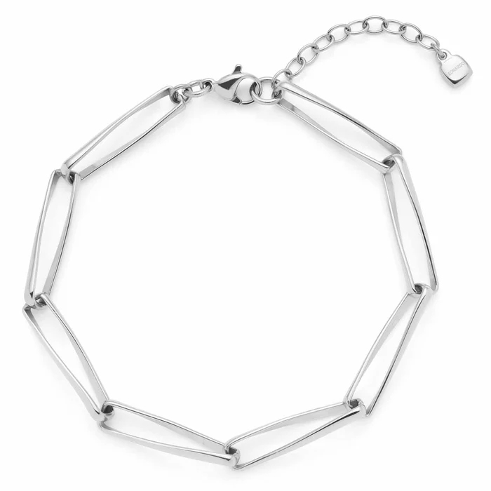Das Armband CONSENZA in Silber vereint schlichte Eleganz mit einem modernen Gliederketten-Look, der zeitlose Schönheit ausstrahlt. Das Armband besticht durch ein sich wiederholendes, in sich gedrehtes, längliches Kettenglied, das dem Design eine klare und zugleich raffinierte Note verleiht.