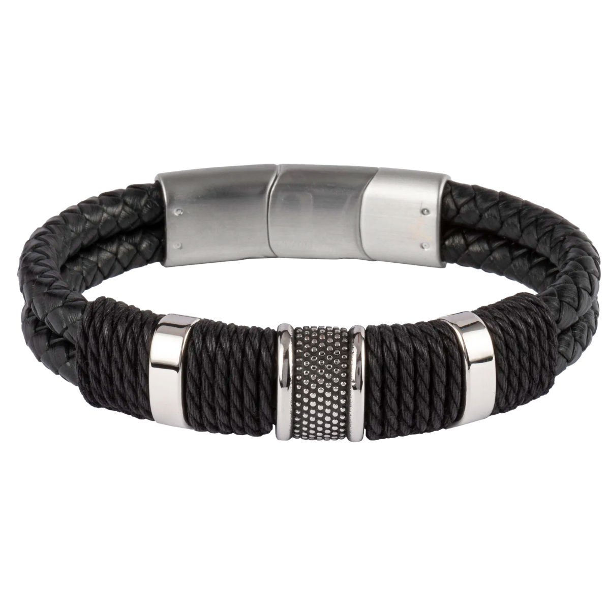 Dieses Jacques Lemans Armband vereint robuste Eleganz und modernes Design. Aus hochwertigem schwarzem Leder gefertigt, beeindruckt es mit einer markanten geflochtenen Struktur und dekorativen Edelstahlelementen. Der detailreiche Mittelteil mit strukturierter Oberfläche verleiht dem Armband einen individuellen Charakter. Der praktische Magnetverschluss sorgt für einfaches Anlegen und sicheren Halt.