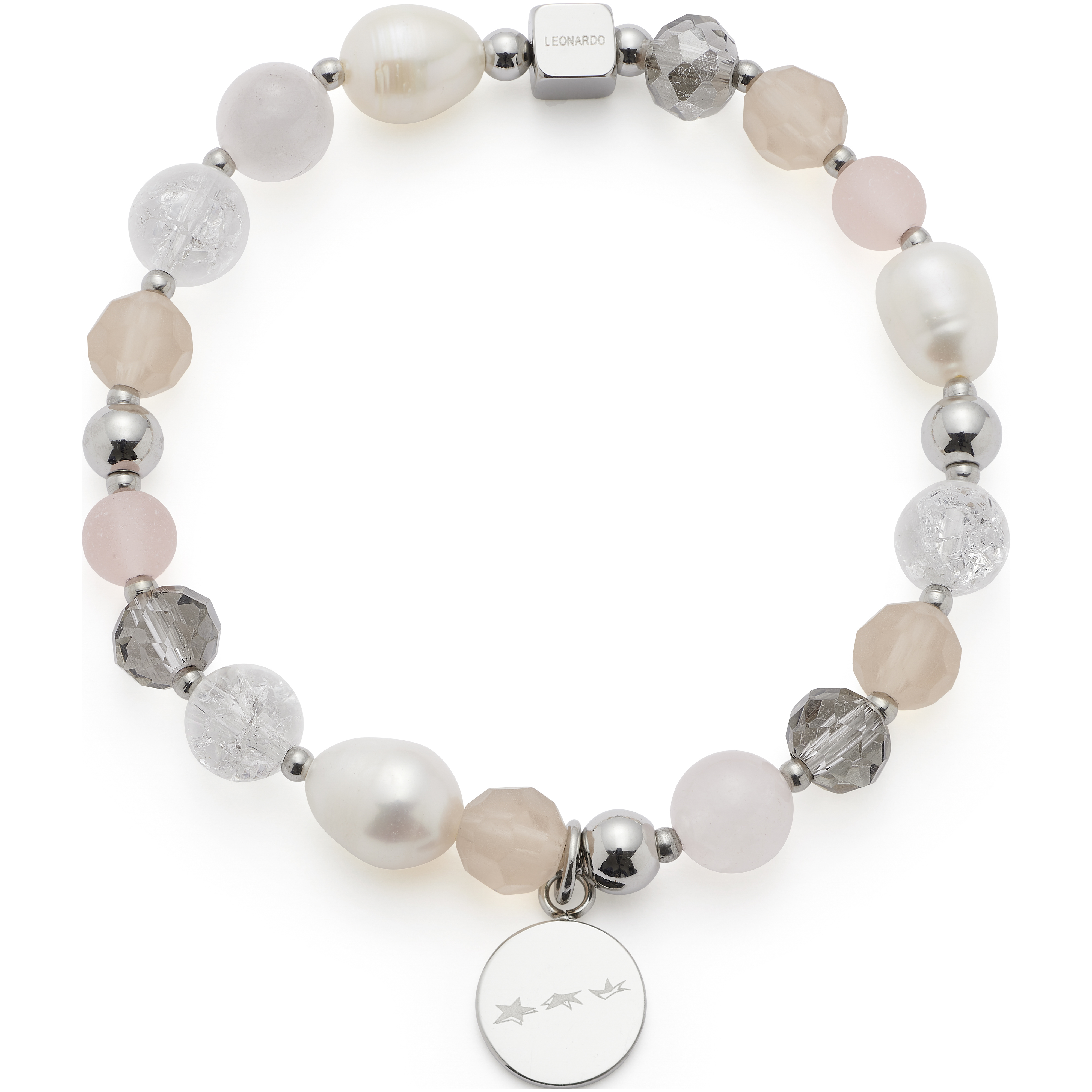 Das Armband HOPE aus der HOPE-Serie von Leonardo steht für Zartheit, Zuversicht und persönliche Verbundenheit. In einem sanften Farbmix aus transparent-weißen, rauchgrauen, rosé- und apricotfarbenen Glasperlen kombiniert mit edlen weißen Süßwasserperlen entsteht ein feminines Schmuckstück mit feinem Glanz. Ein flacher, runder Anhänger aus poliertem Edelstahl rundet das Design ab – gravierbar für Namen, Initialen oder bedeutungsvolle Botschaften.