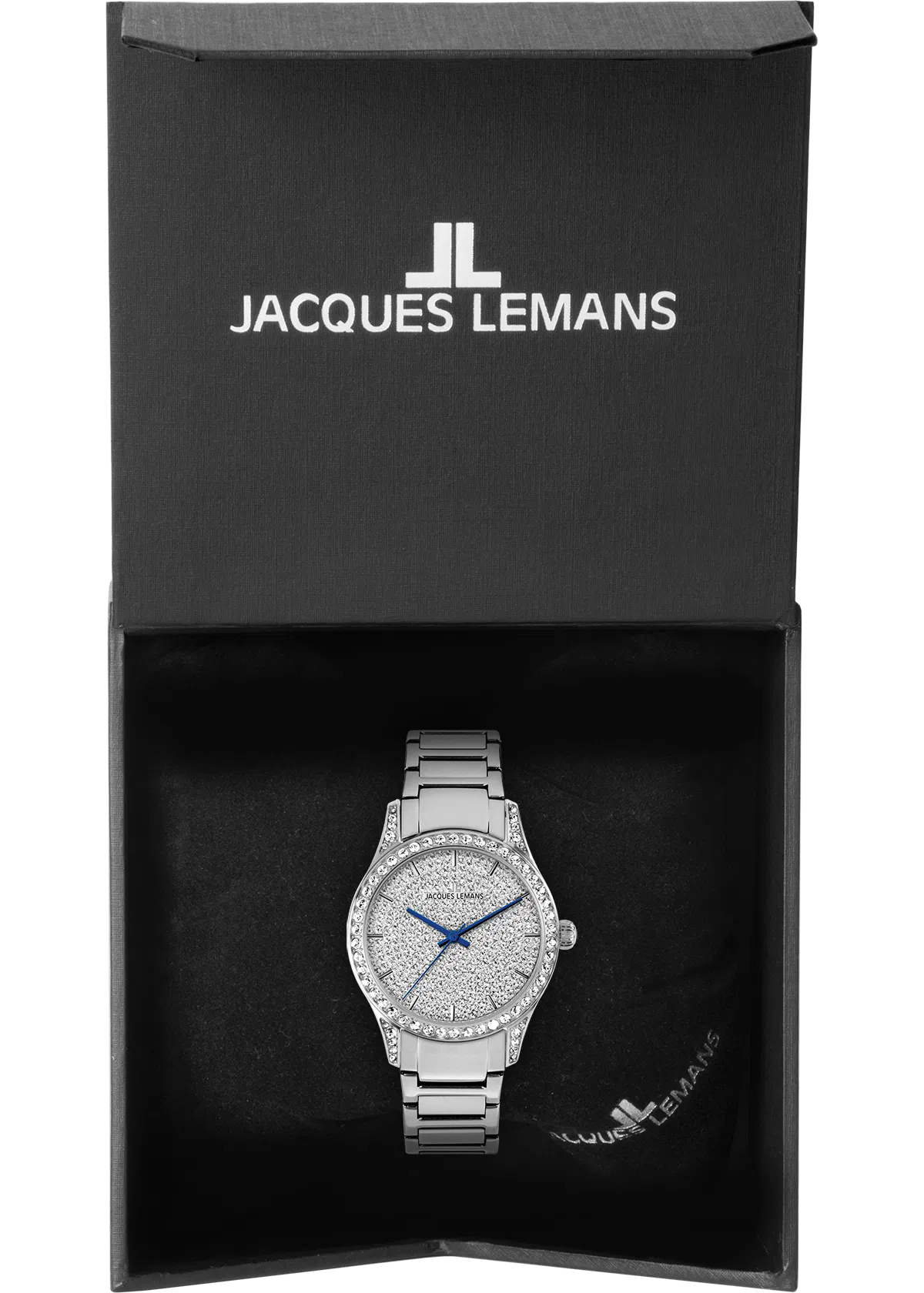 Die Jacques Lemans Venice 1-2191A vereint zeitlose Eleganz mit hochwertiger Verarbeitung. Das massive Edelstahlgehäuse mit einem Durchmesser von 38,0 mm verleiht der Uhr eine klassische, ausgewogene Optik und macht sie zum idealen Begleiter für Alltag und besondere Anlässe.