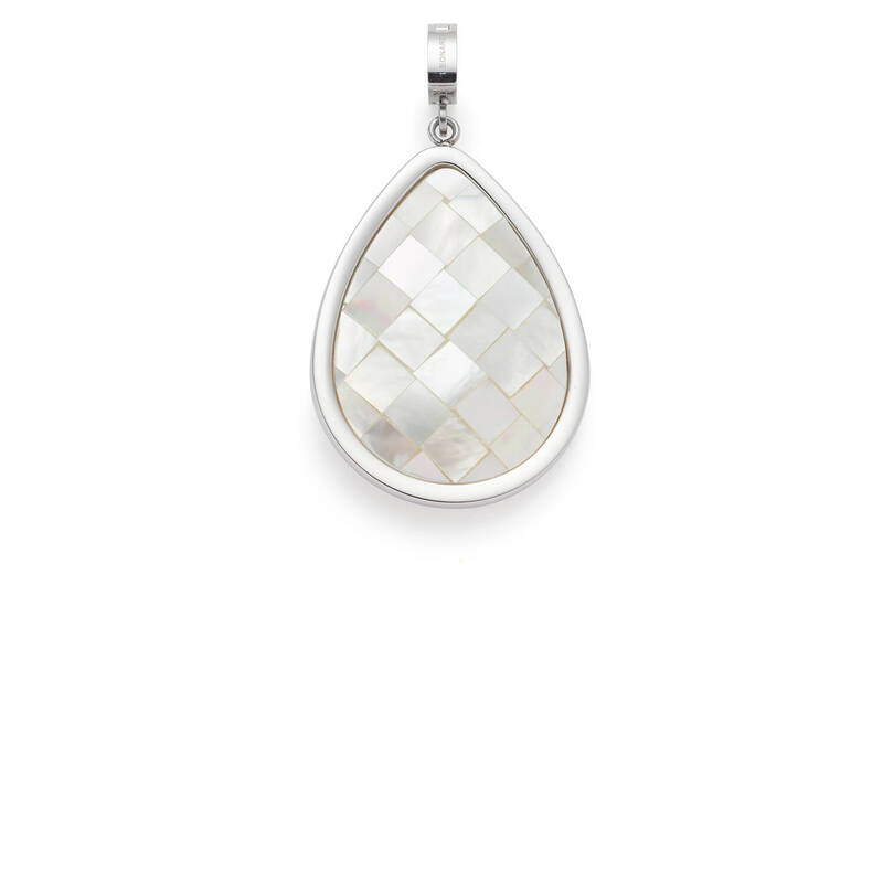Im Mittelpunkt steht ein edler Perlmuttstein, der aus fein gearbeiteten Muschelkern-Quadraten zusammengesetzt ist. Dieses raffinierte Detail sorgt für einen außergewöhnlichen Schimmer und verleiht dem Schmuckstück eine lebendige, hochwertige Optik. Dank des integrierten Clips in Größe M lässt sich IRA mühelos an passenden Basis-Ketten oder -Armbändern befestigen und flexibel mit weiteren Elementen kombinieren.