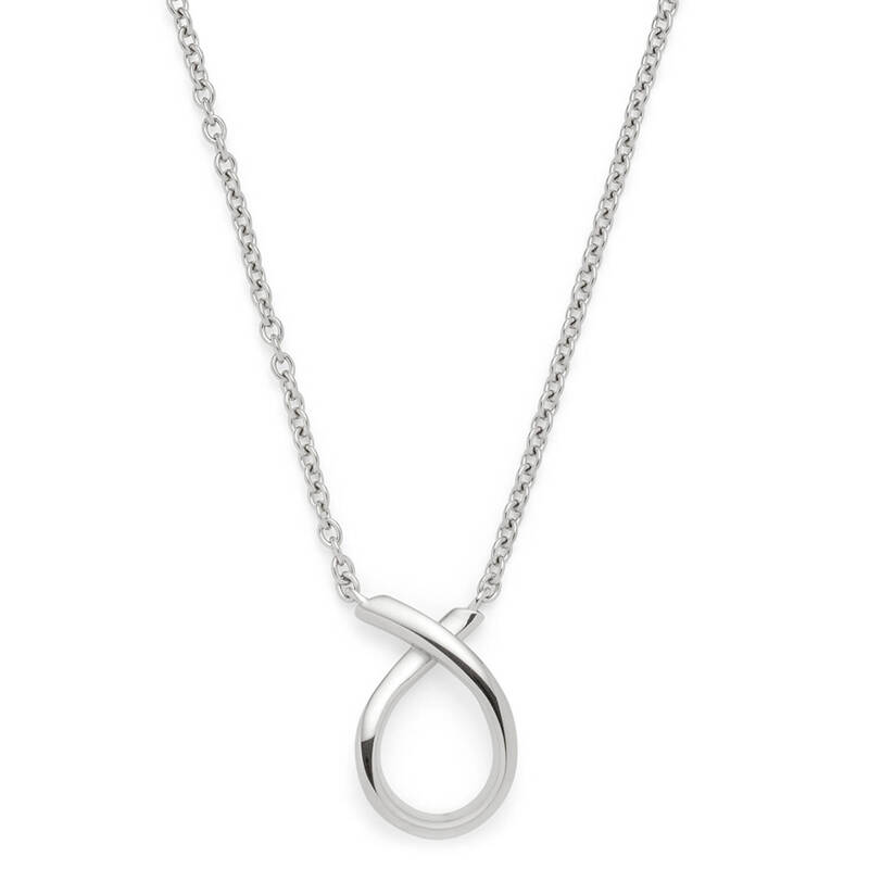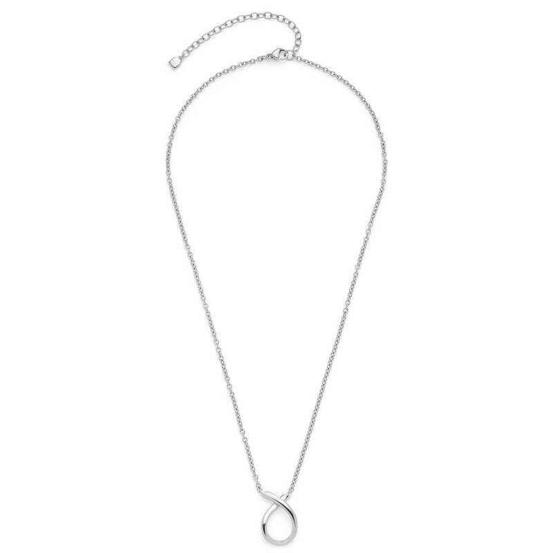 Im Mittelpunkt steht ein dekoratives, glänzendes Zwischenelement in Form einer Schlaufe mit zwei Enden, durch die eine feine Weitankerkette verläuft. Dadurch entsteht eine fließende Linienführung, die dem Schmuckstück Leichtigkeit und dezente Bewegung verleiht. Das reduzierte Design macht ANJA zu einem stilvollen Basic mit besonderem Charakter.