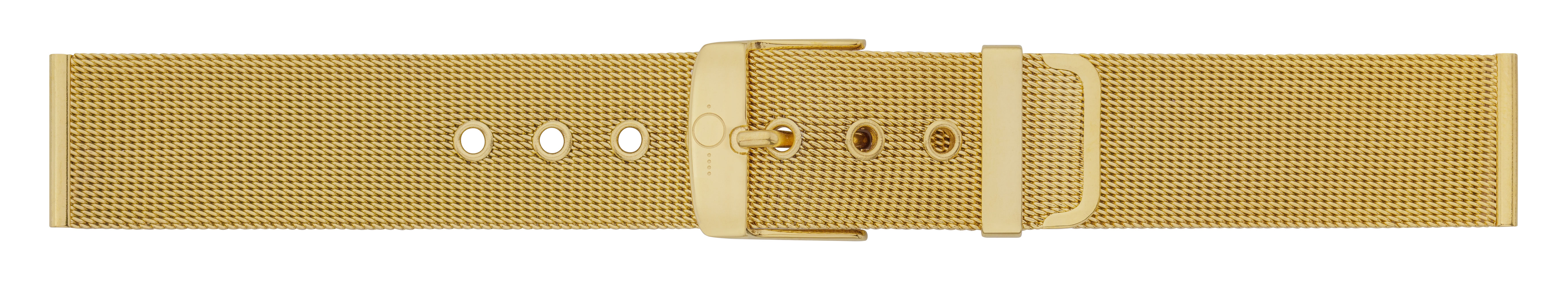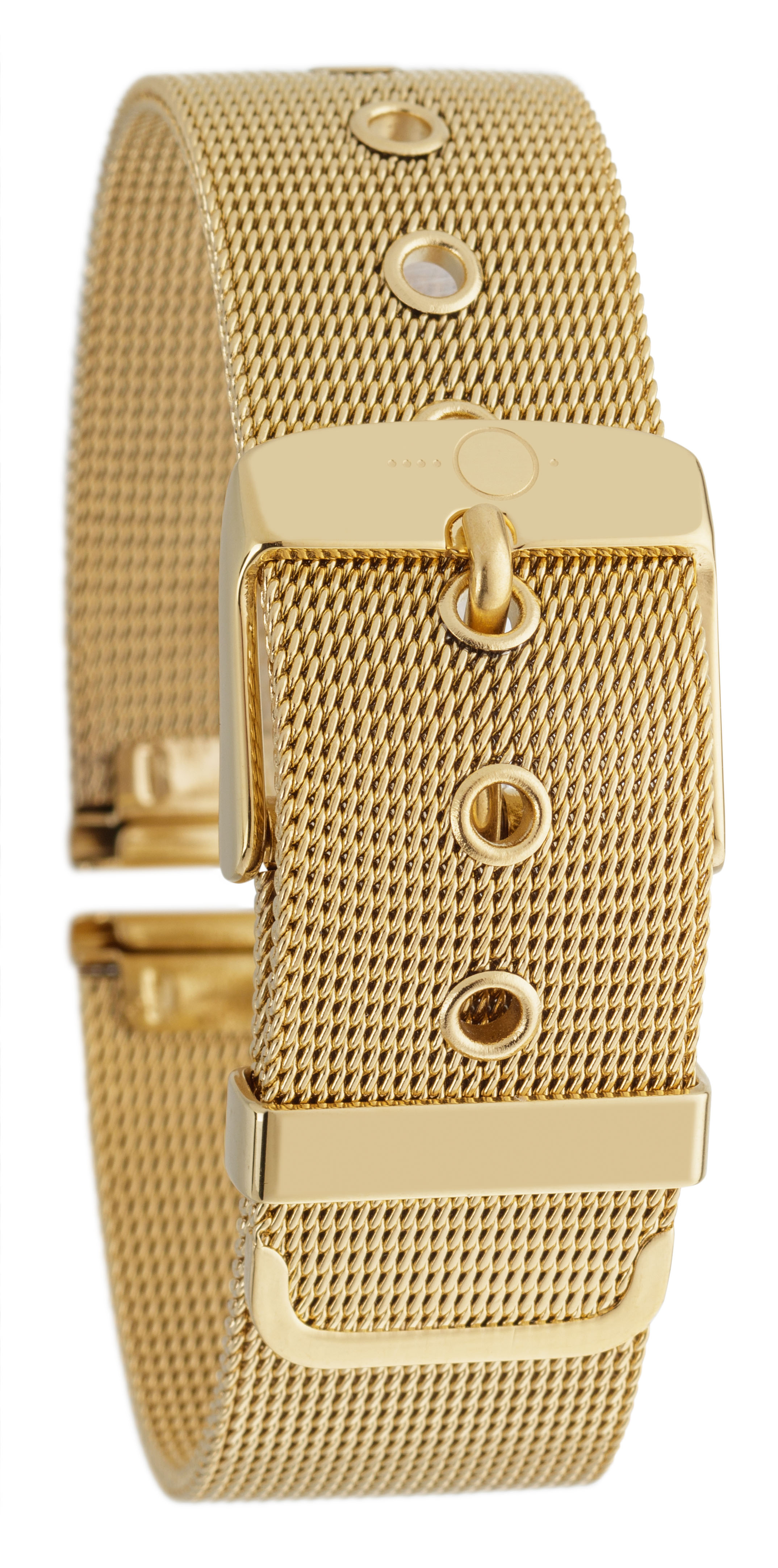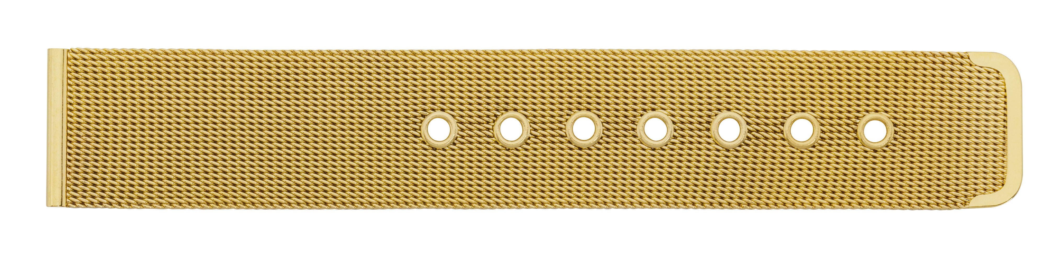 Besonderes vergoldetes Edelstahl Uhrenarmband für Uhren mit einem Anstoss von 14, 16, 18, 20 oder 22 mm mit Dornverschluss.