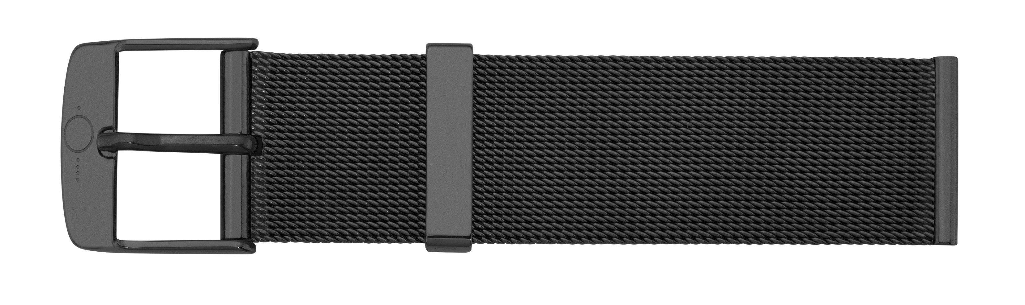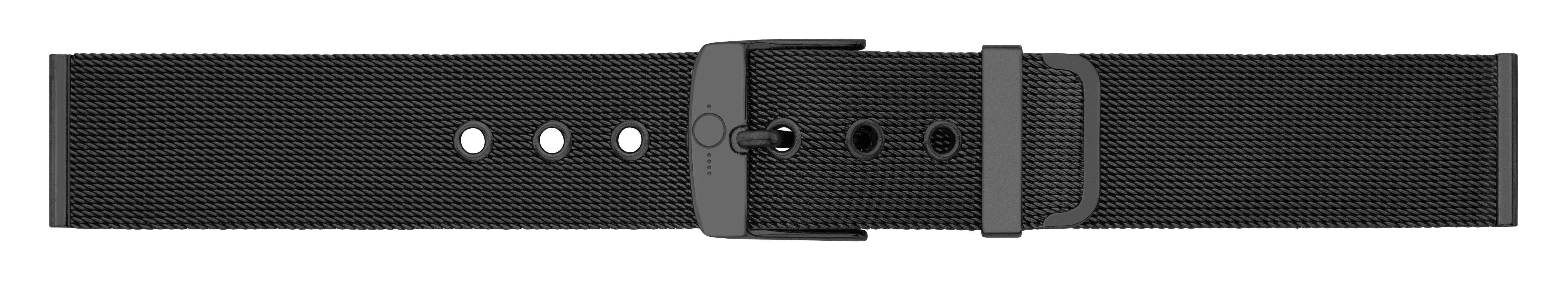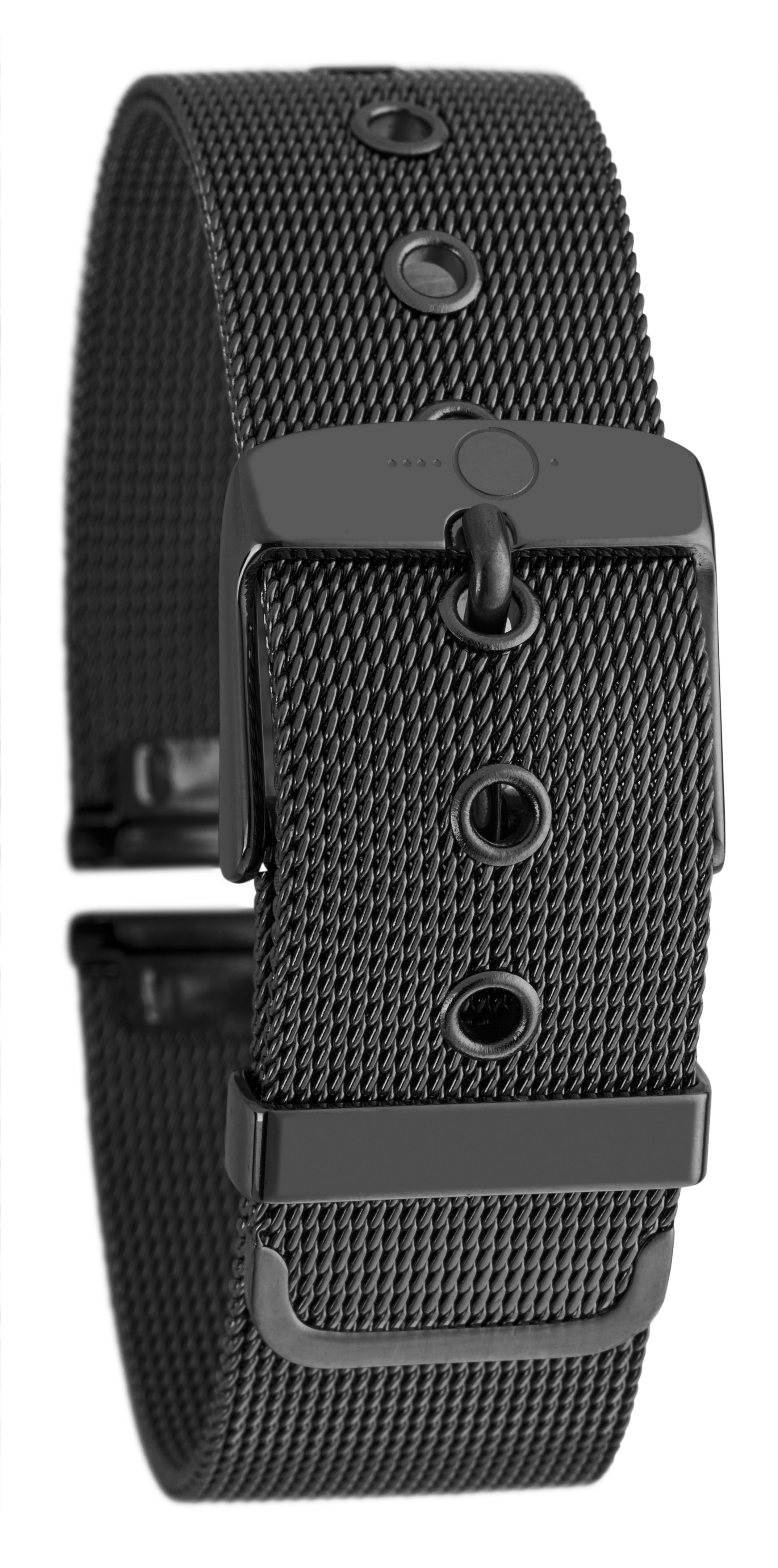 Besonderes schwarzes Edelstahl Uhrenarmband für Uhren mit einem Anstoss von 14, 16, 18, 20 oder 22 mm mit Dornverschluss.