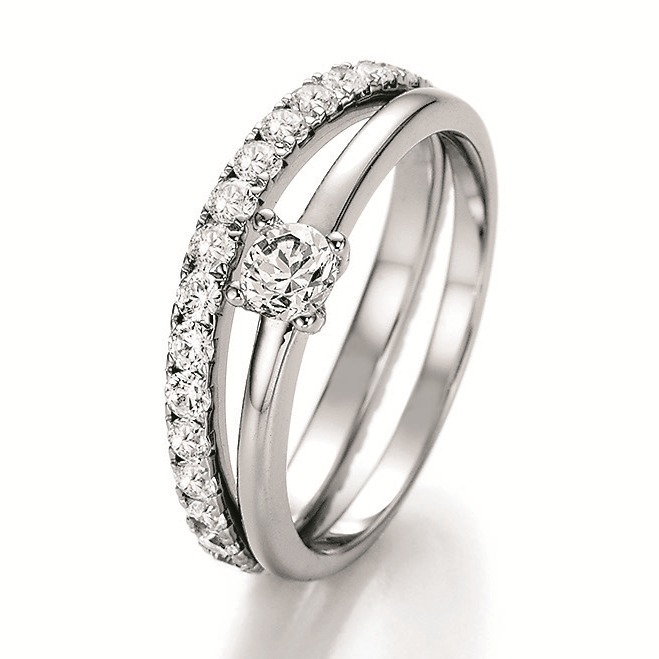 Solitaire Ringe aus 585 Weissgold mit zusammen 1,43 ct w/si Brillanten. Der Mittelstein beim Solitärring hat 0,25 ct W/Si Die Brillanten beim Weissgoldring sind umlaufend und haben zusammen 1,184 ct W/Si