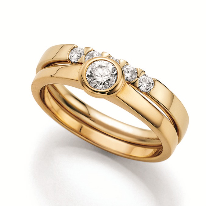 Solitaire Ringe aus 585 Gelbgold mit zusammen 0,60 ct w/si Brillanten. Der Mittelstein beim Solitairering hat 0,33 ct W/Si Die Brillanten beim Memoire Ring haben zusammen 0,275 ct W/Si
