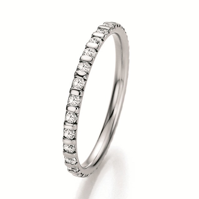 Memoire Ring aus 585 Weissgold umlaufend mit 0,560 ct w/si Brillanten gefasst. Breite: 1,9 mm Stärke: 1,7 mm