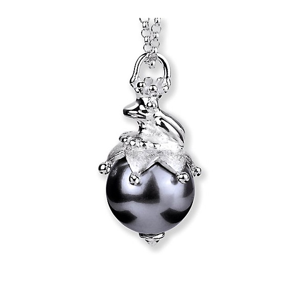 Frosch Anhänger aus Silber mit grauer Muschelkernperle